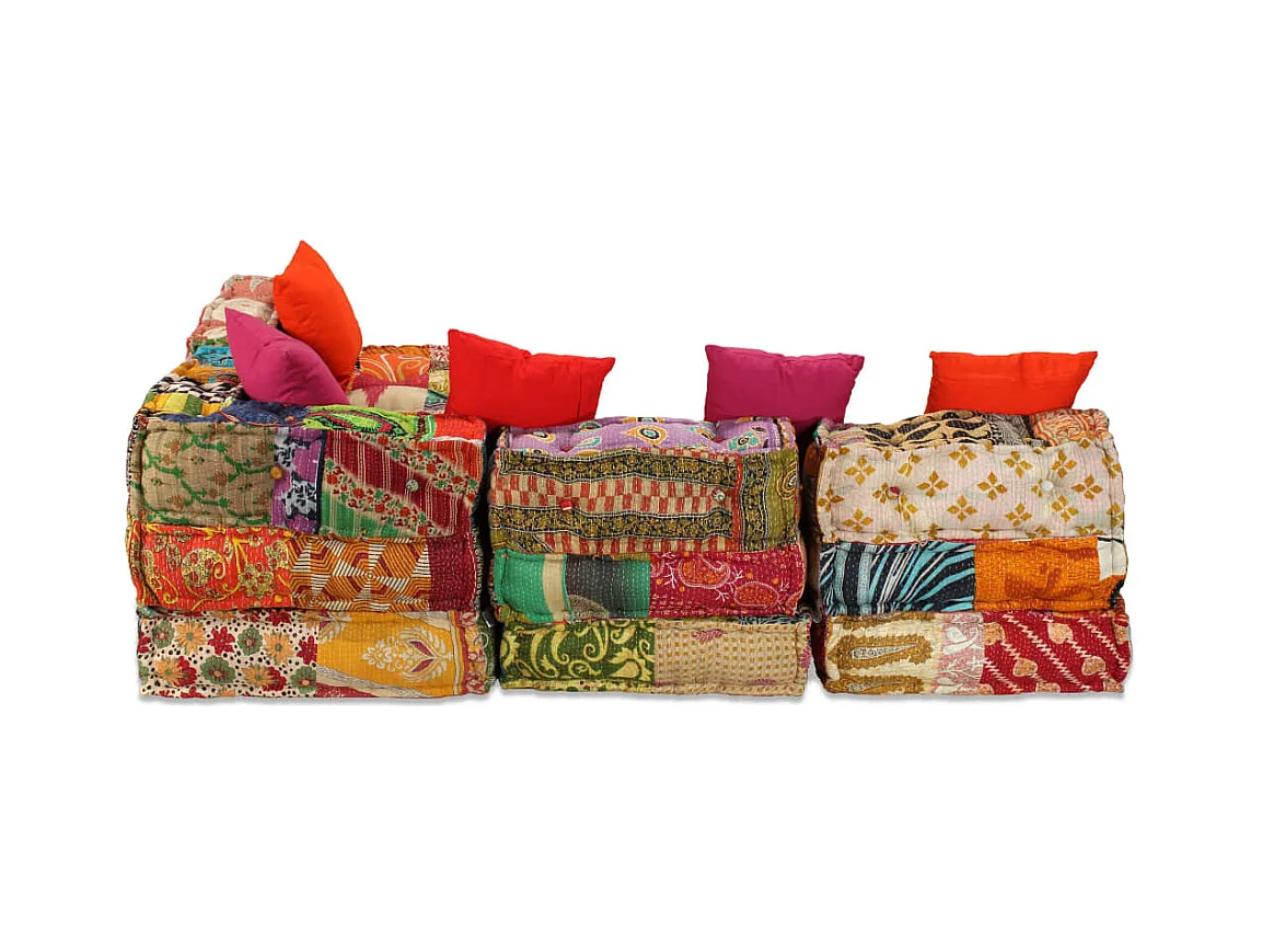 Bibiane Pouf modulaire à 4 places Patchwork Tissu