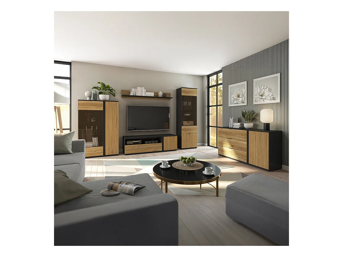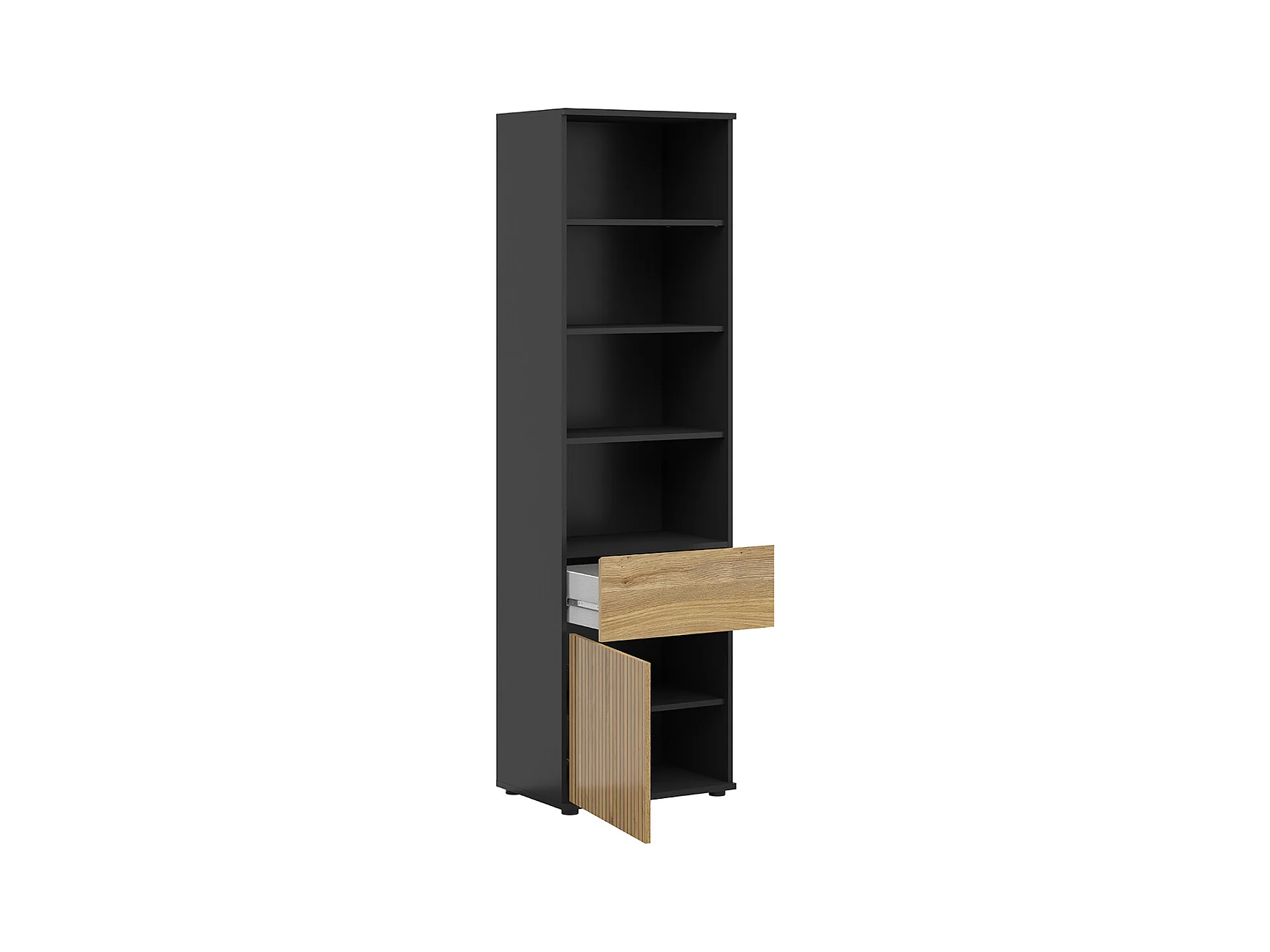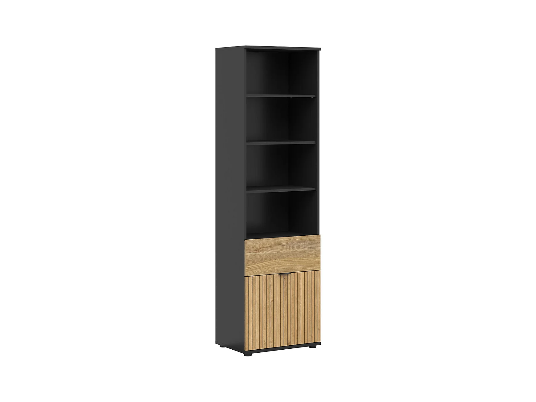 Bibliothèque 1 porte 1 tiroir Pia Noir et Bois