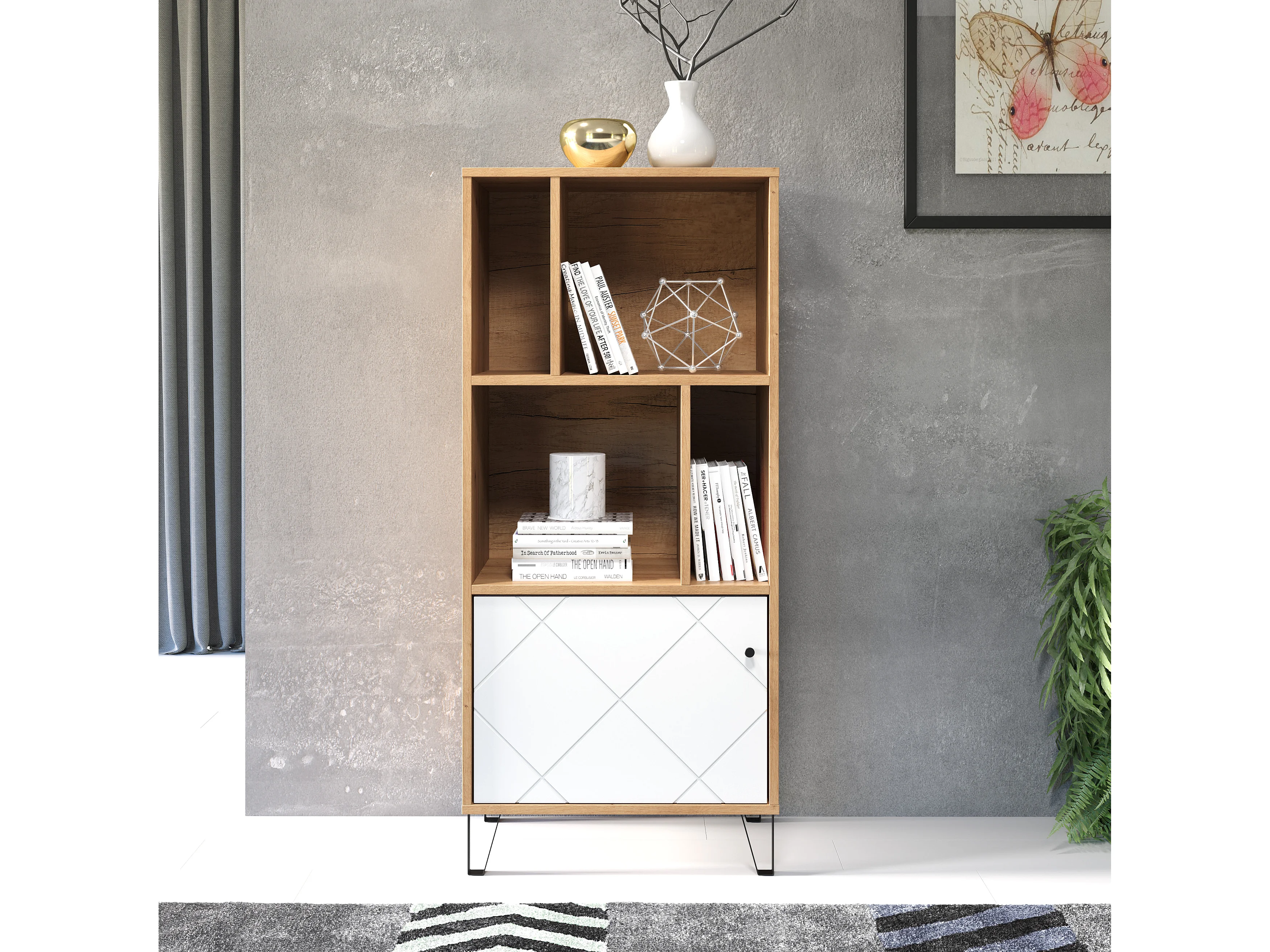 Bibliothèque 1 porte et 4 niches blanc mat H136 cm - Touch