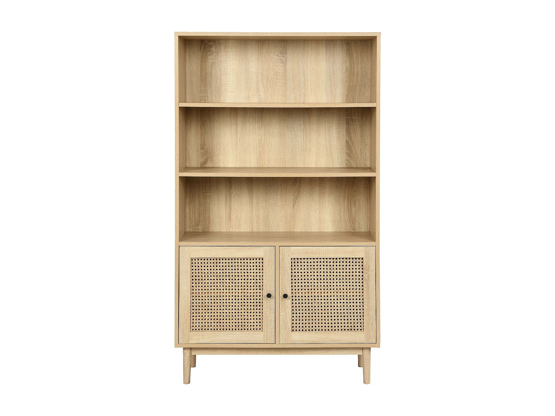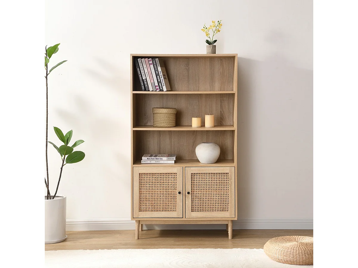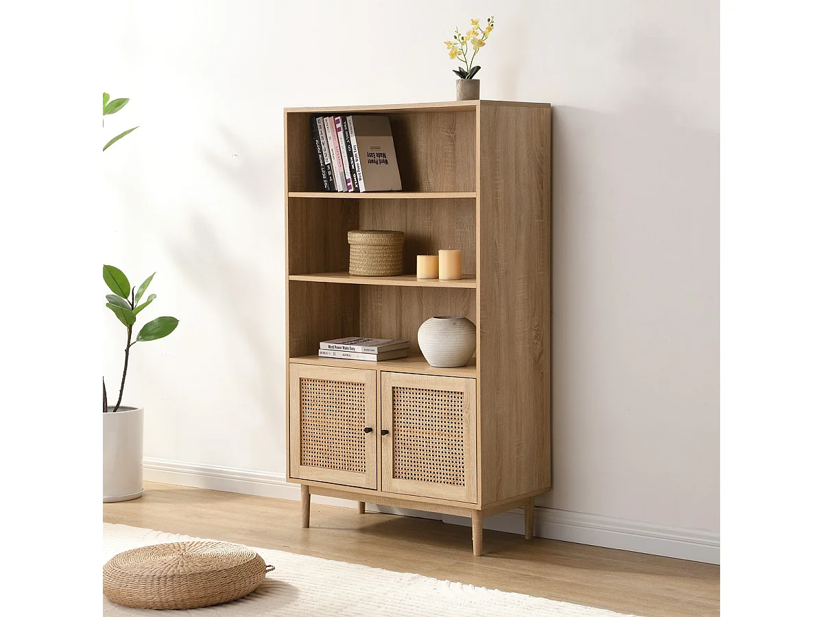Bibliothèque 2 portes couleur chêne et cannage 84 cm - Dali