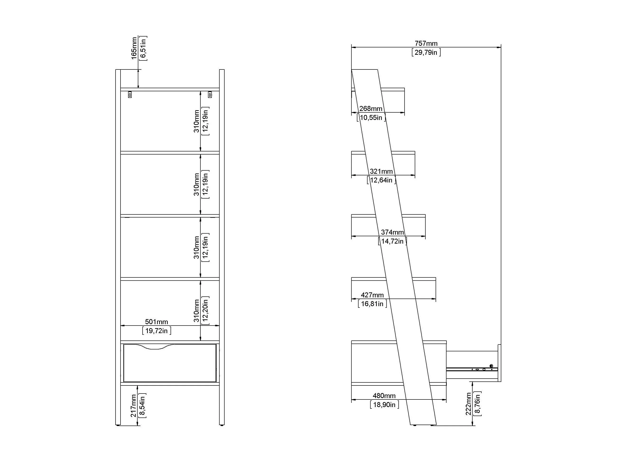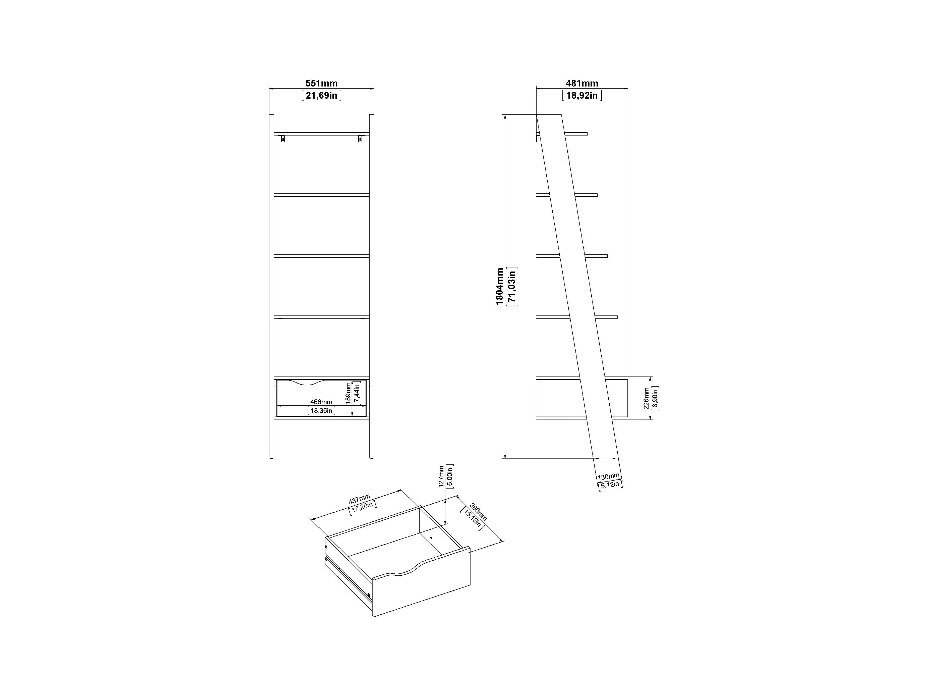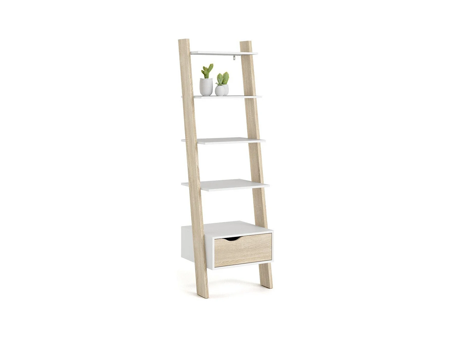 Bibliothèque 4 étagères, 1 tiroir blanc et décor chêne H180,4 cm - BILLUND