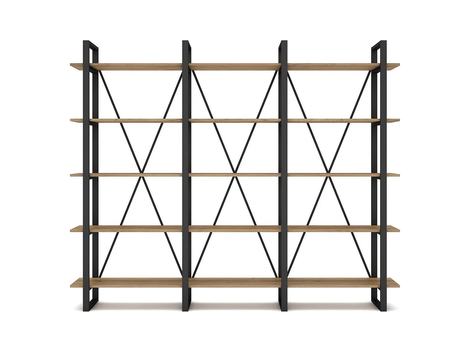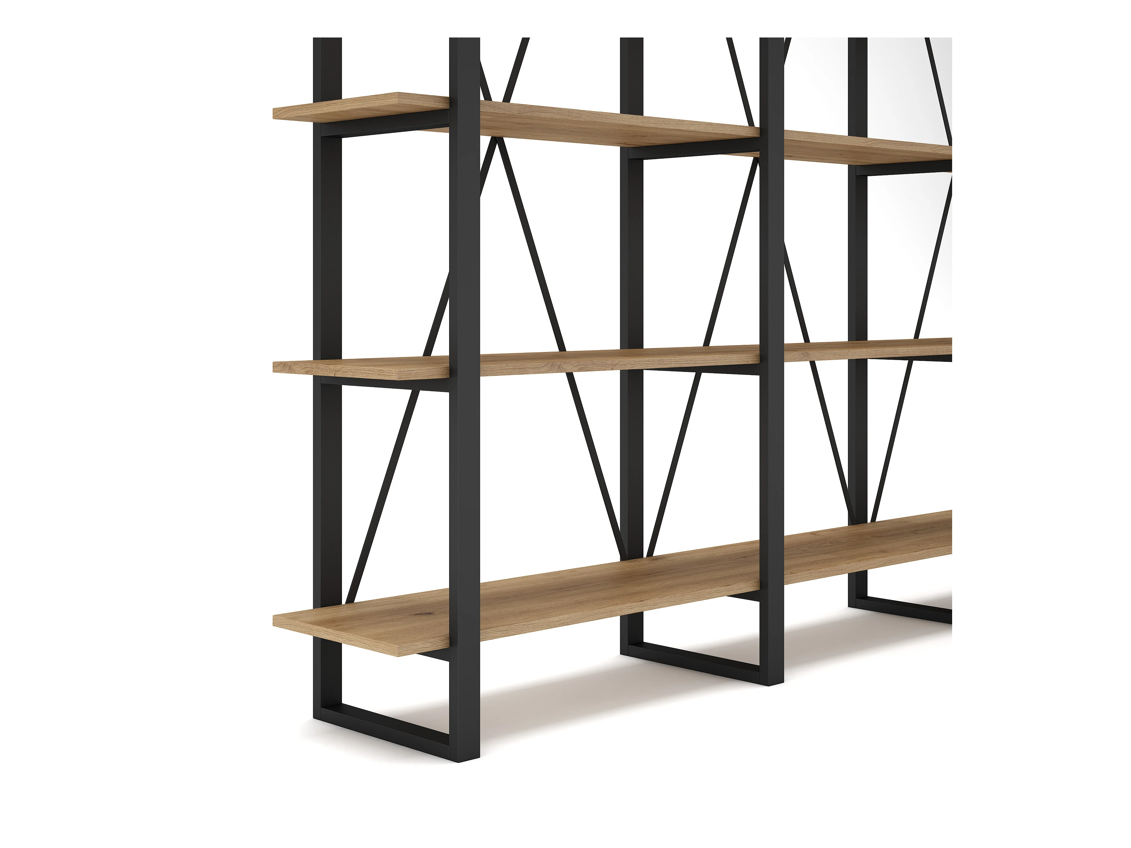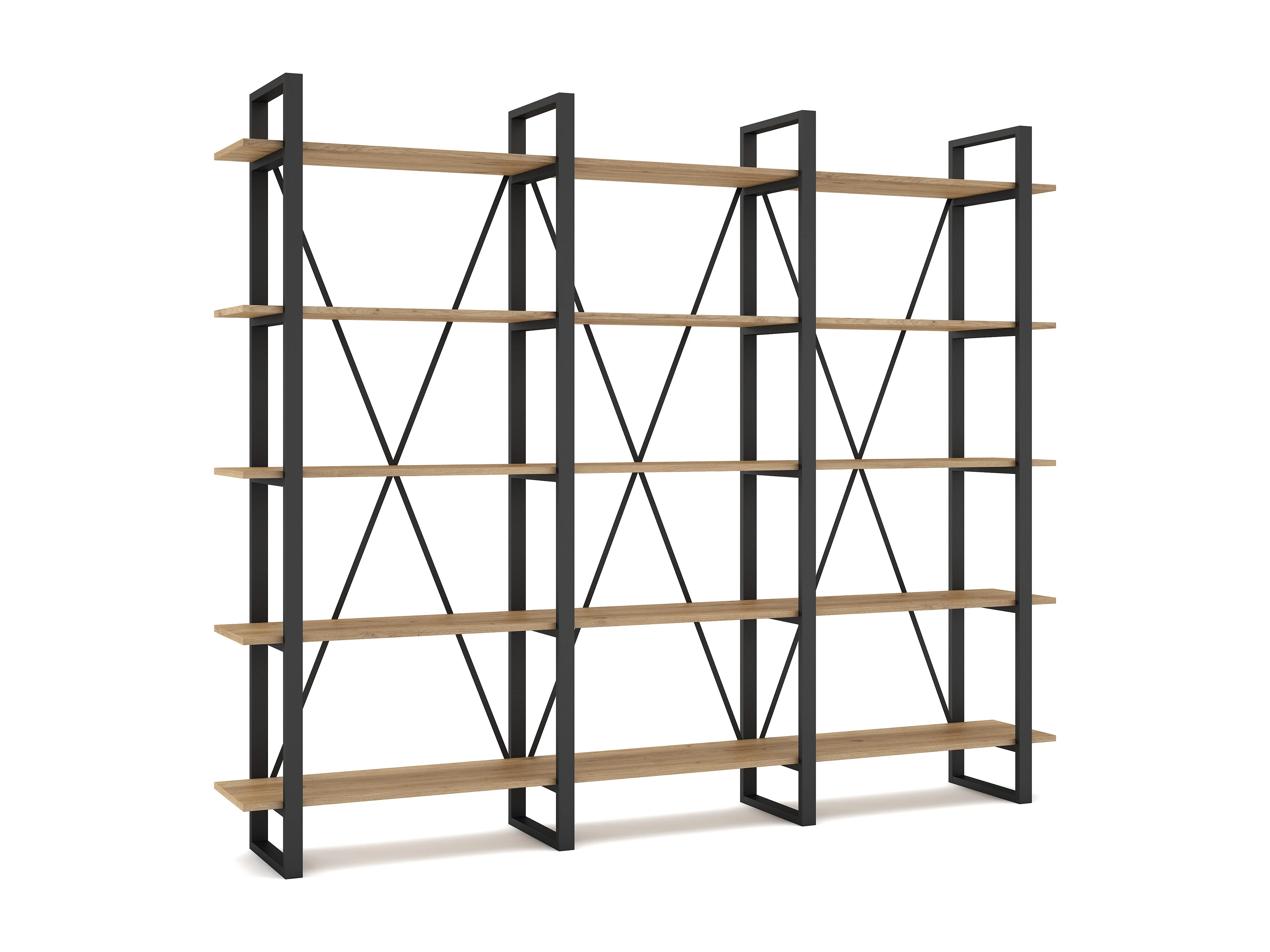 Bibliothèque 4 niveaux en métal noir et effet chêne 217.5 cm - Genna
