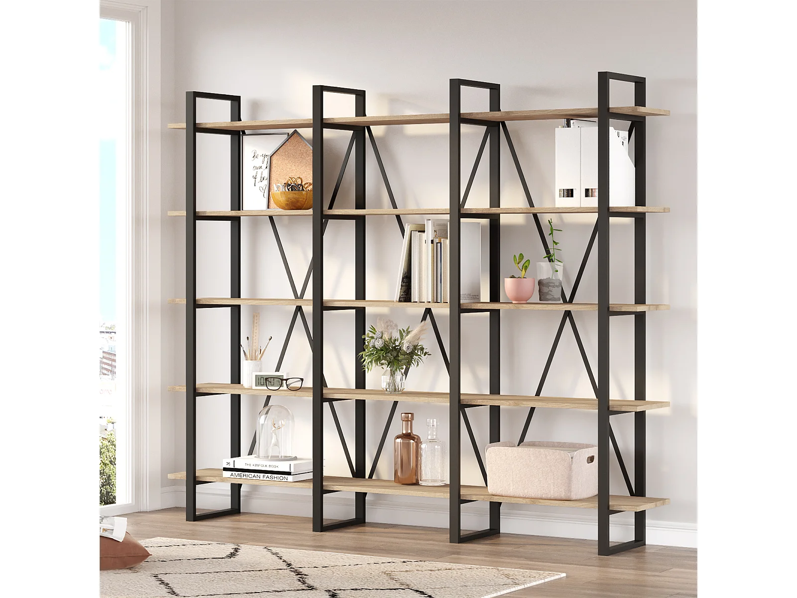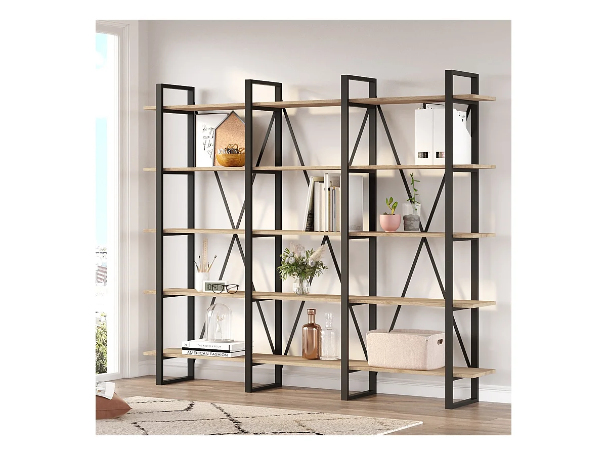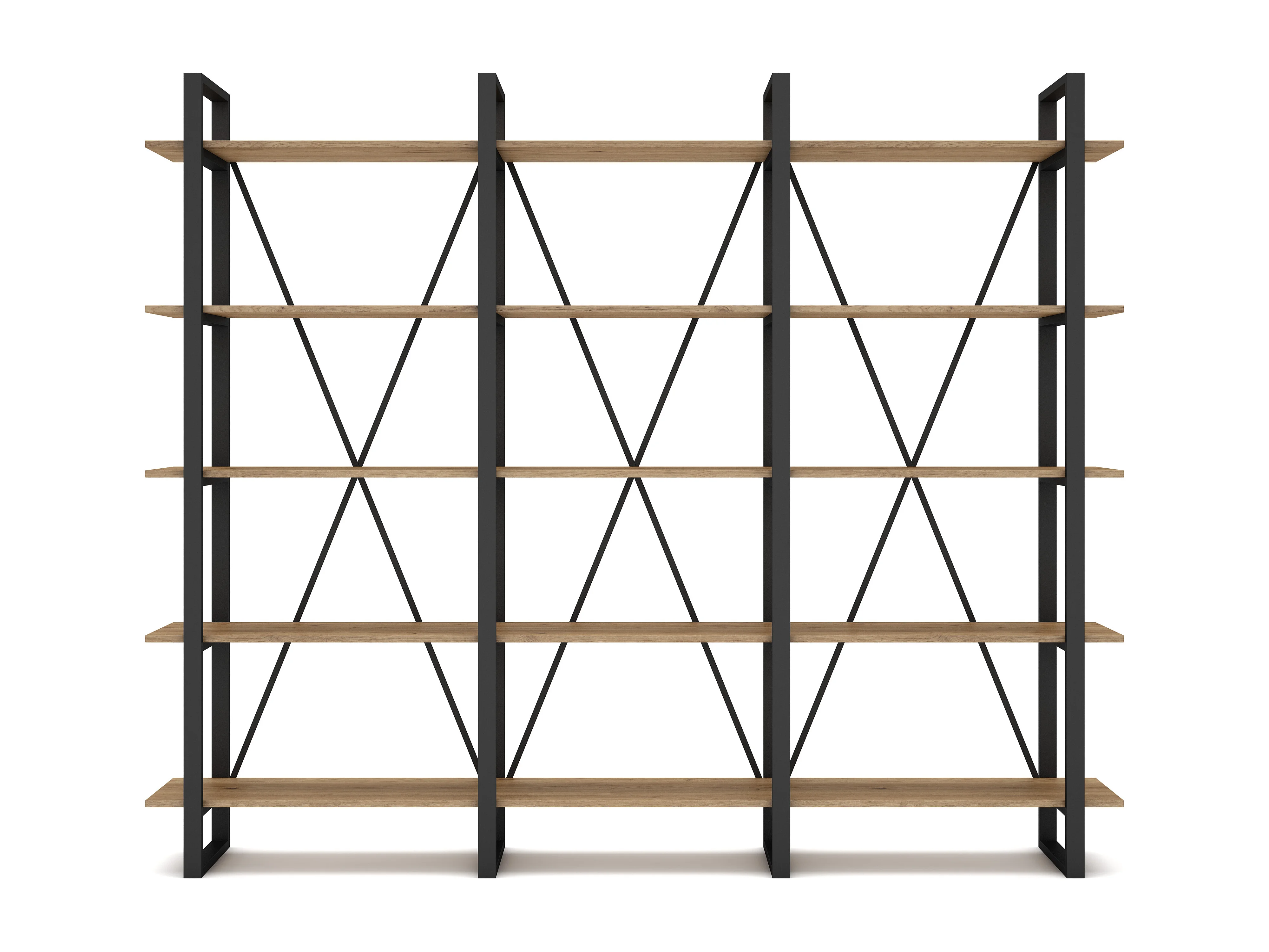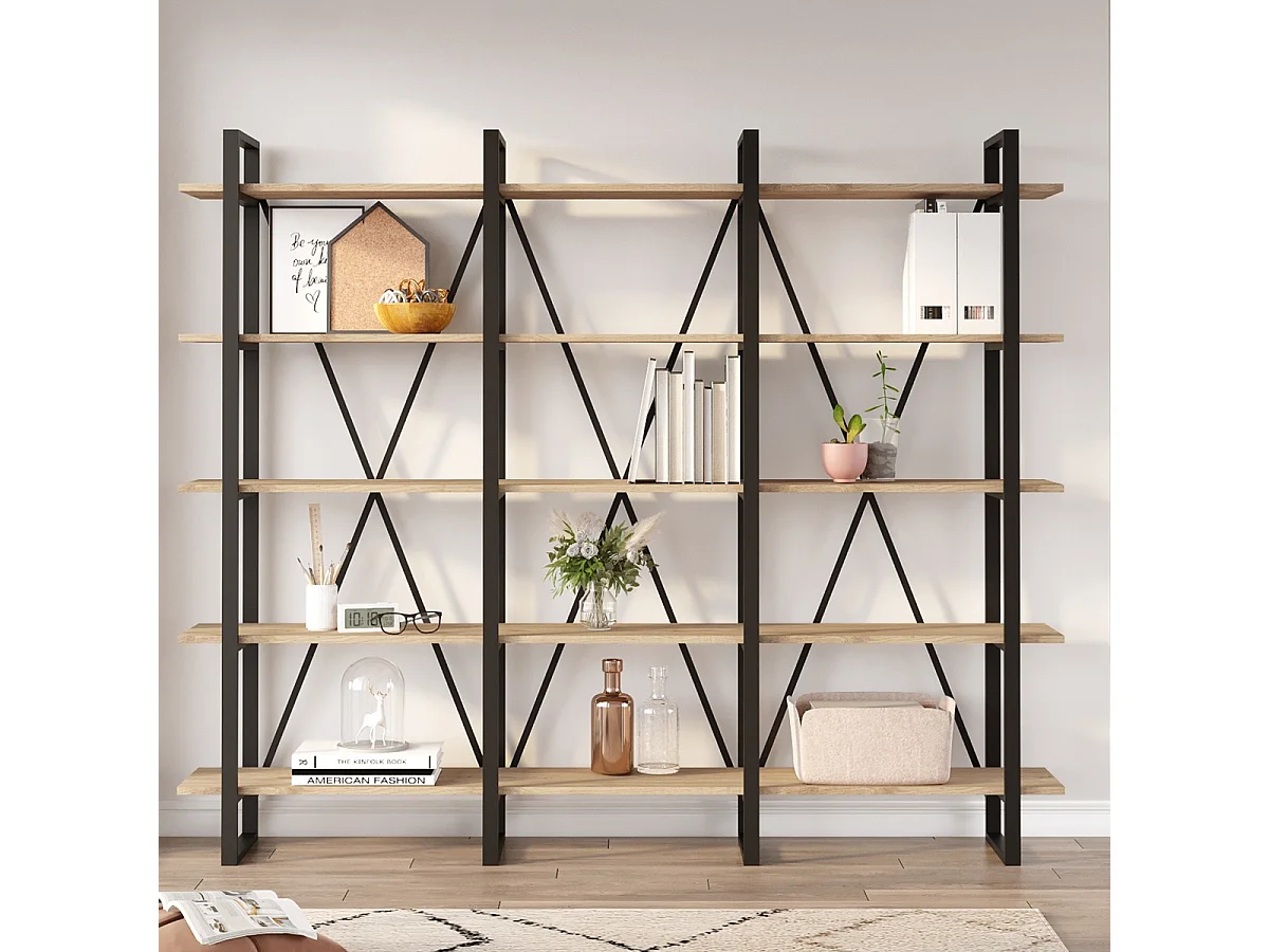 Bibliothèque 4 niveaux en métal noir et effet chêne 217.5 cm - Genna