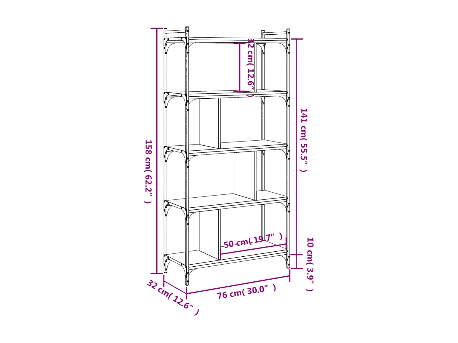 Bibliothèque 5 niveaux chêne fumé 76x32x158 bois d'ingénierie