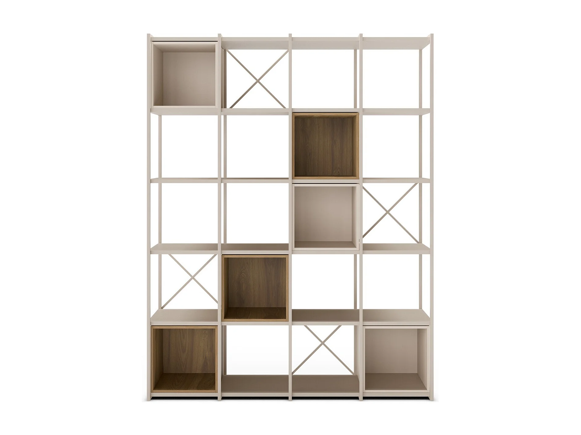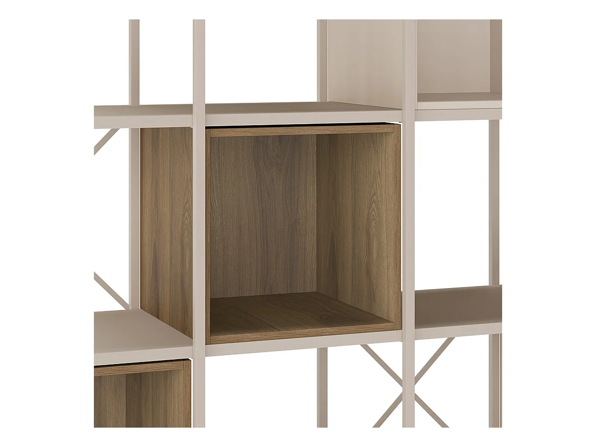 Bibliothèque 5 niveaux en métal beige et décor bois 140 cm - Elie