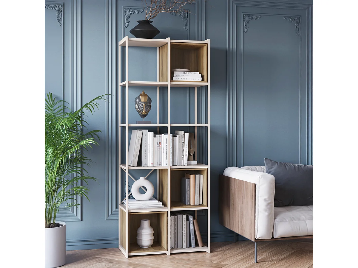 Bibliothèque 5 niveaux en métal beige et décor bois 70 cm - Elie