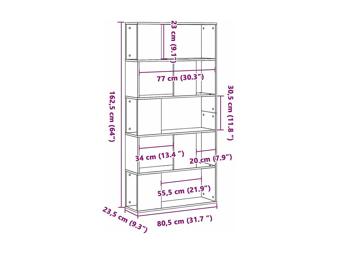 Bibliothèque 5 niveaux sonoma gris bois d'ingénierie