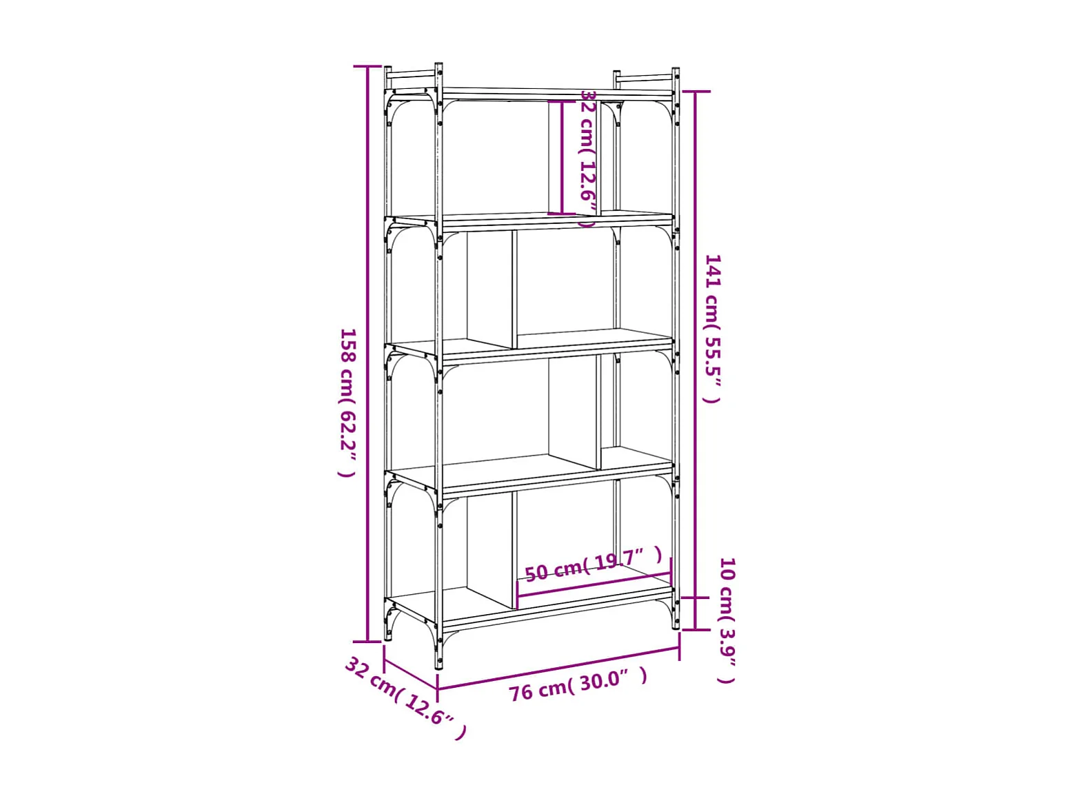 Bibliothèque 5 niveaux noir 76x32x158 bois d'ingénierie