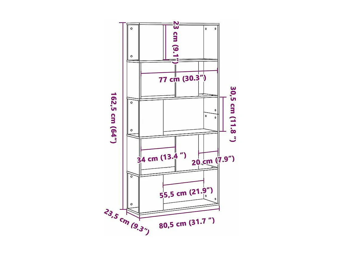 Bibliothèque 5 niveaux gris béton bois d'ingénierie FR250034