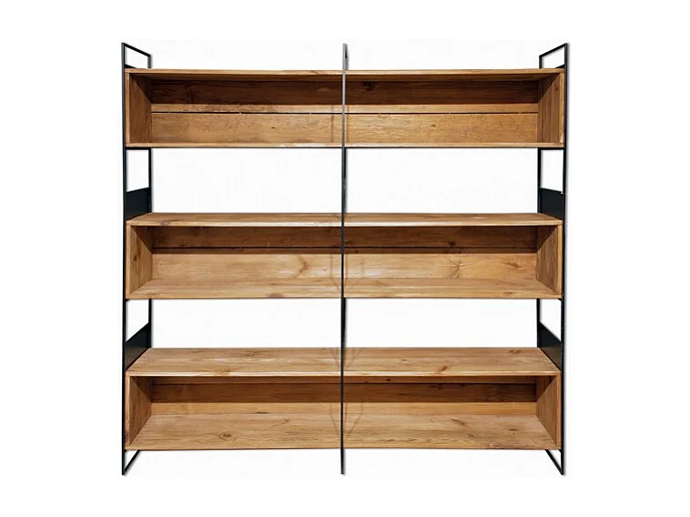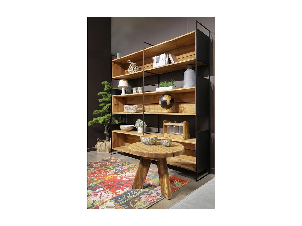 Bibliothèque filaire 6 étagères bois recyclé et métal noir - CABANON