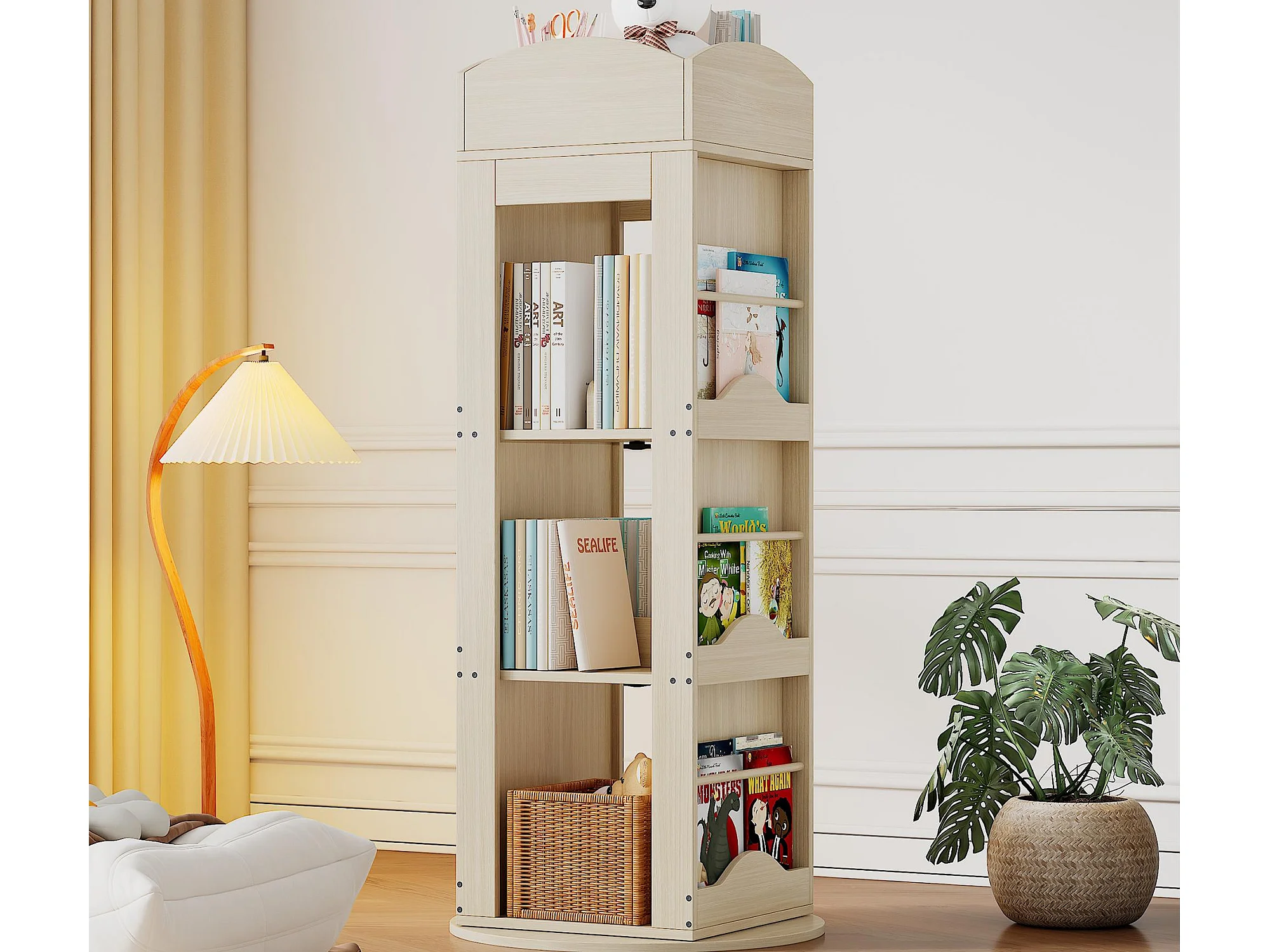 Bibliothèque rotative - 63 x 63 x 142 cm - étagère de rangement pour enfants et adultes - MDF - naturel