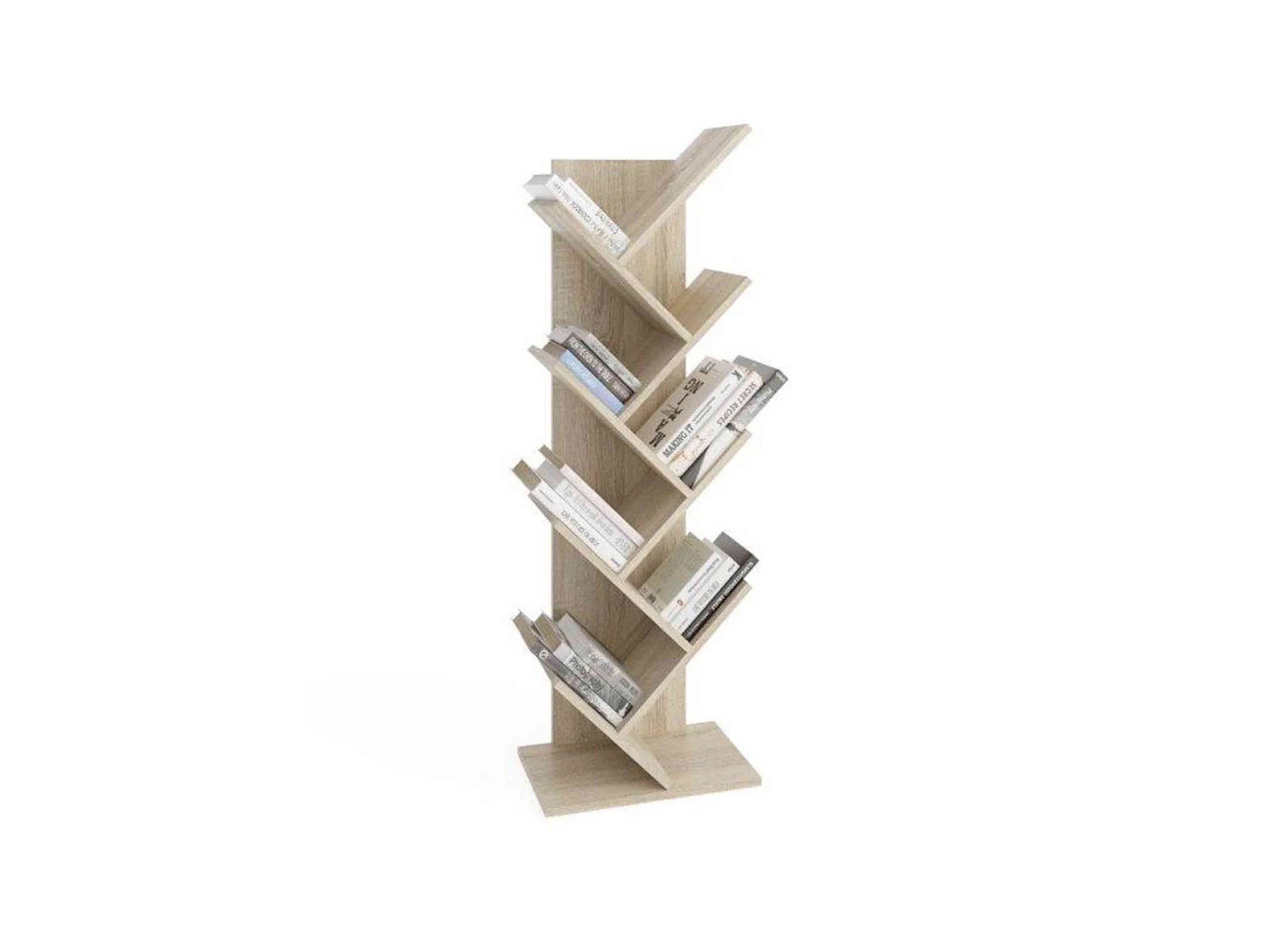 Bibliothèque 7 étagères en quinconce en bois imitation chêne clair - BI9045