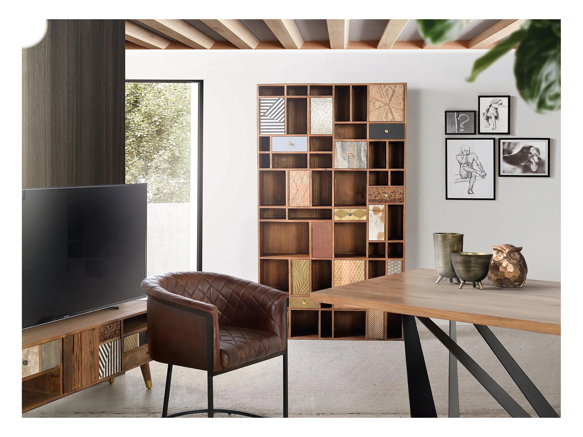 Etagère en bois de manguier couleur noyer clair