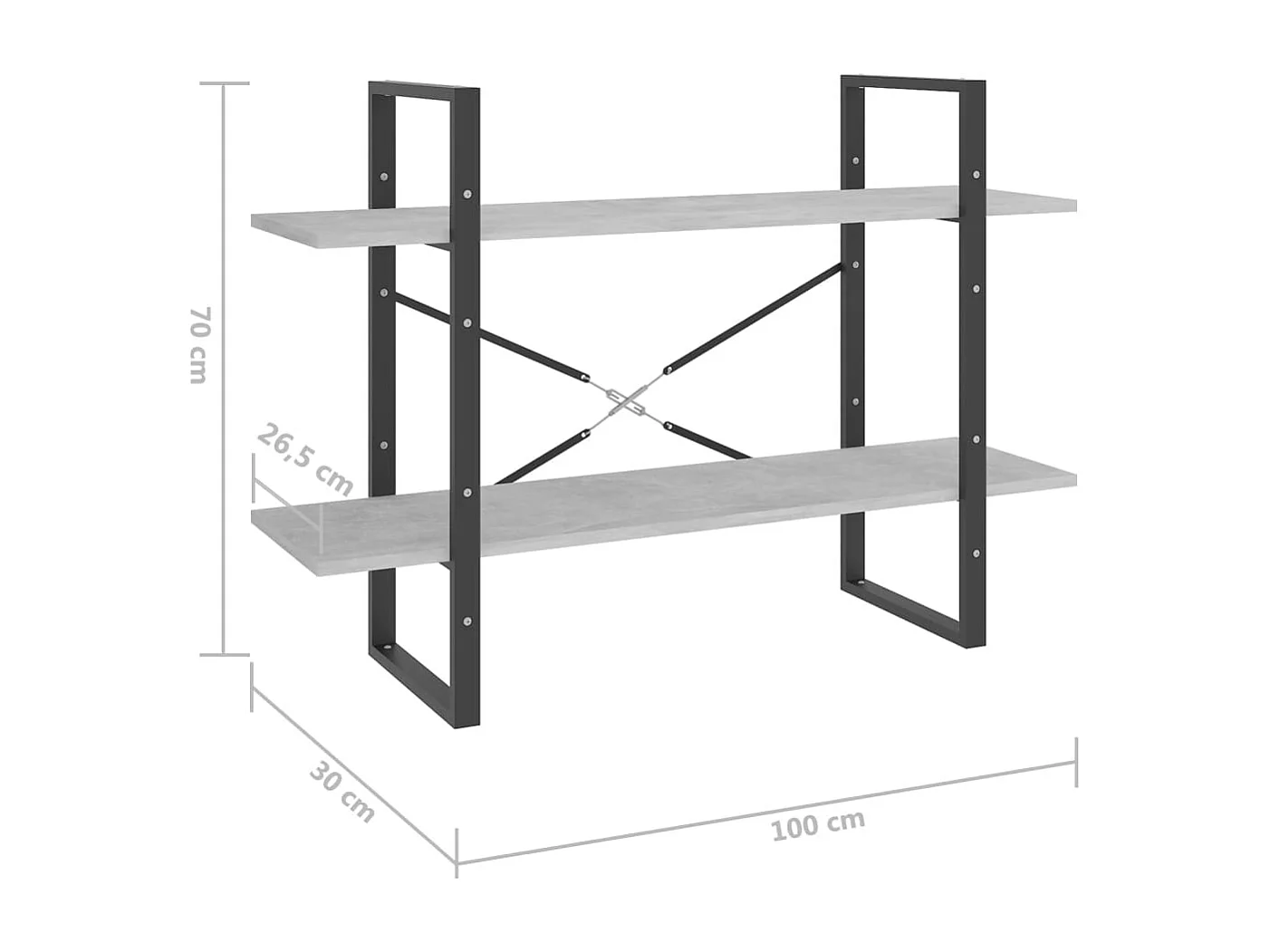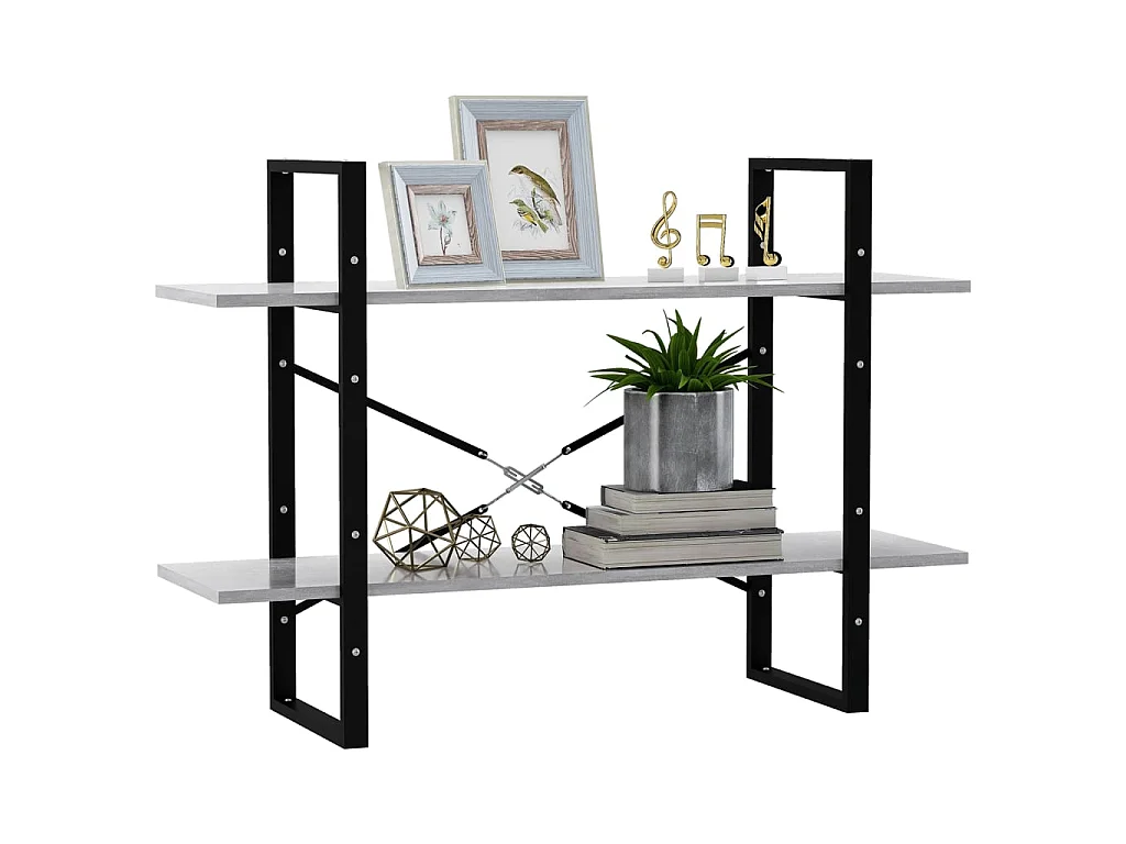 Bibliothèque à 2 niveaux Gris béton 80x30x70