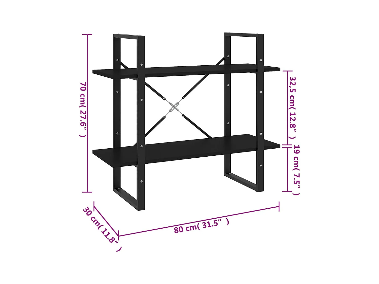 Bibliothèque à 2 niveaux Noir 80x30x70 cm bois d'ingénierie
