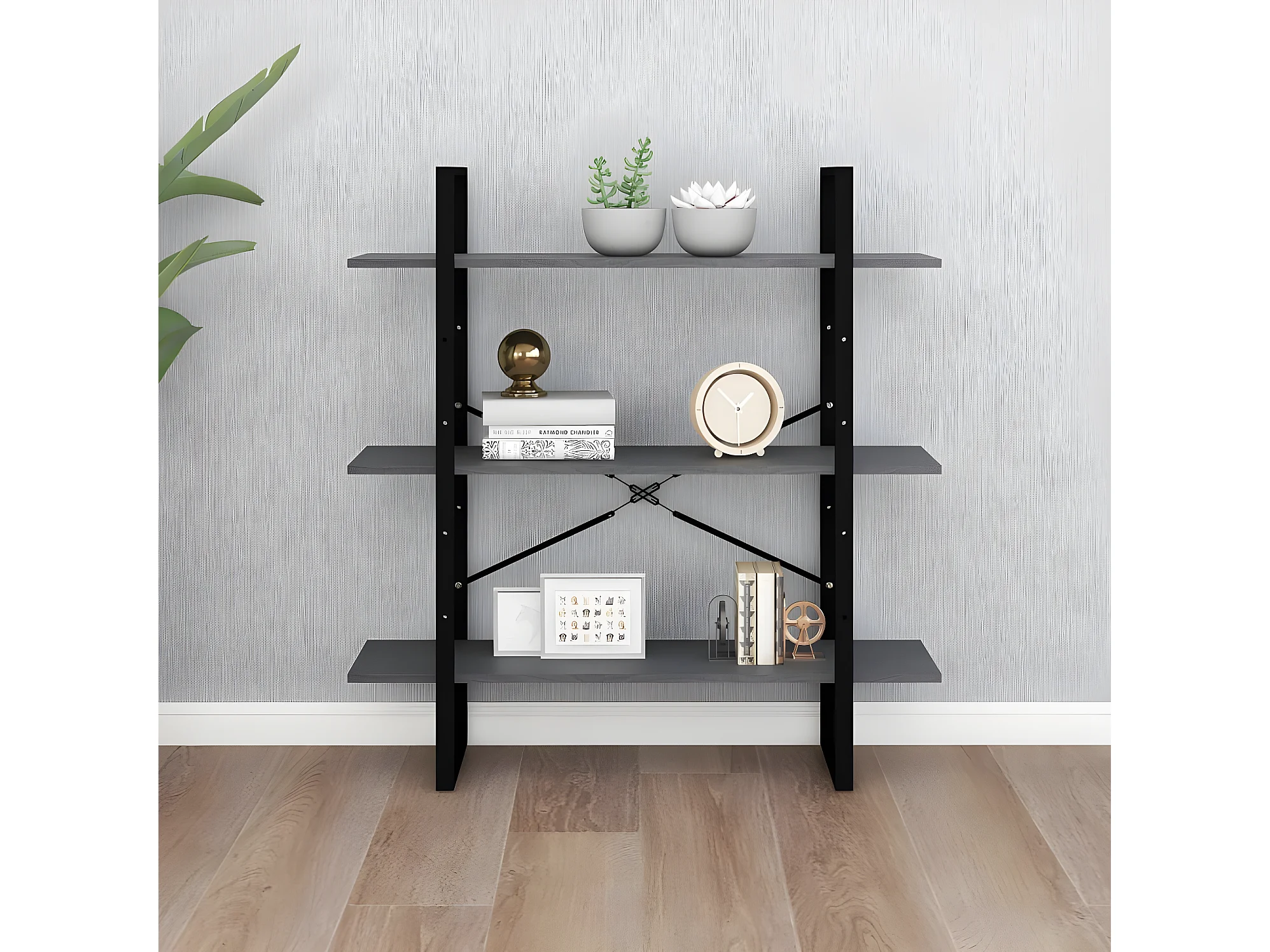 Bibliothèque à 3 niveaux Gris 100x30x105 cm Bois de pin massif