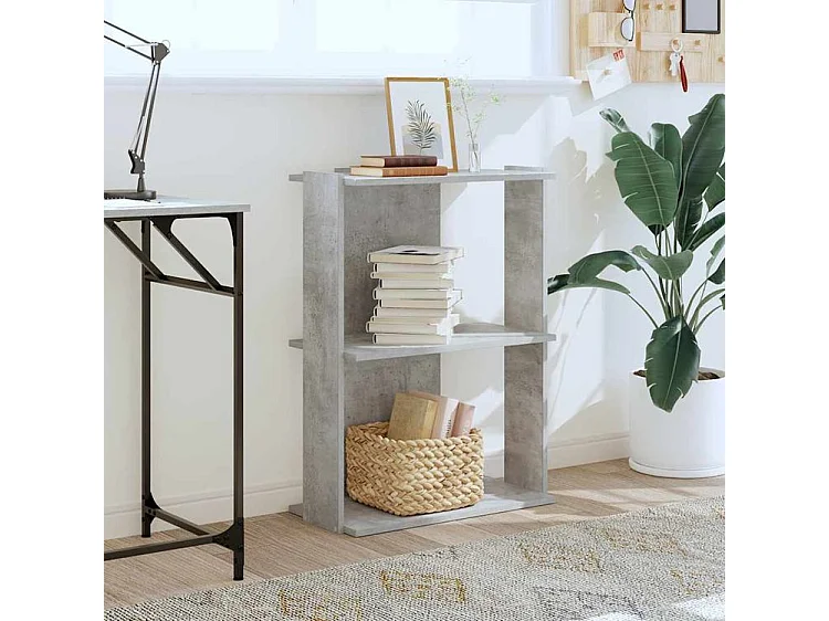 Bibliothèque à 3 niveaux gris béton 60x30x80 bois ingénierie