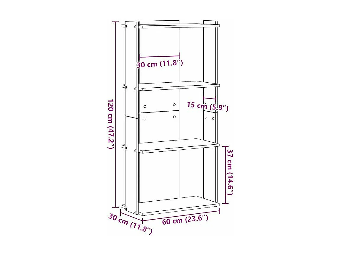 Bibliothèque à 4 niveaux noir 40x30x120 bois d'ingénierie