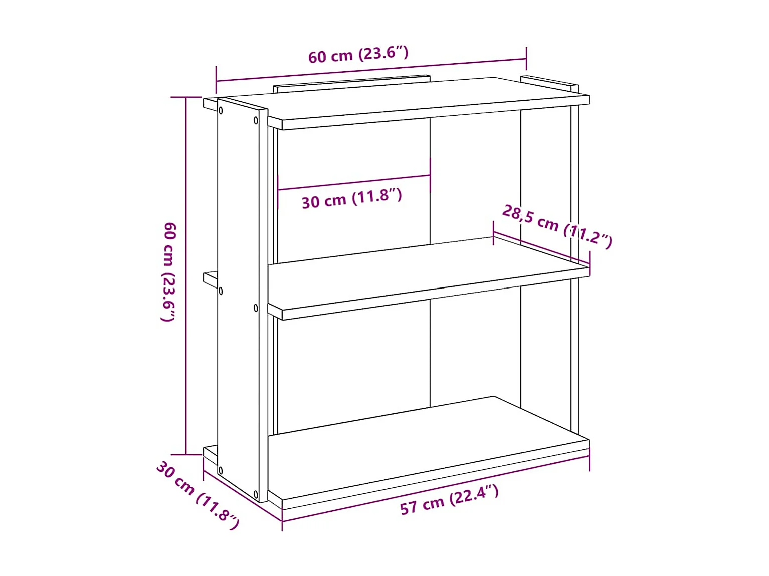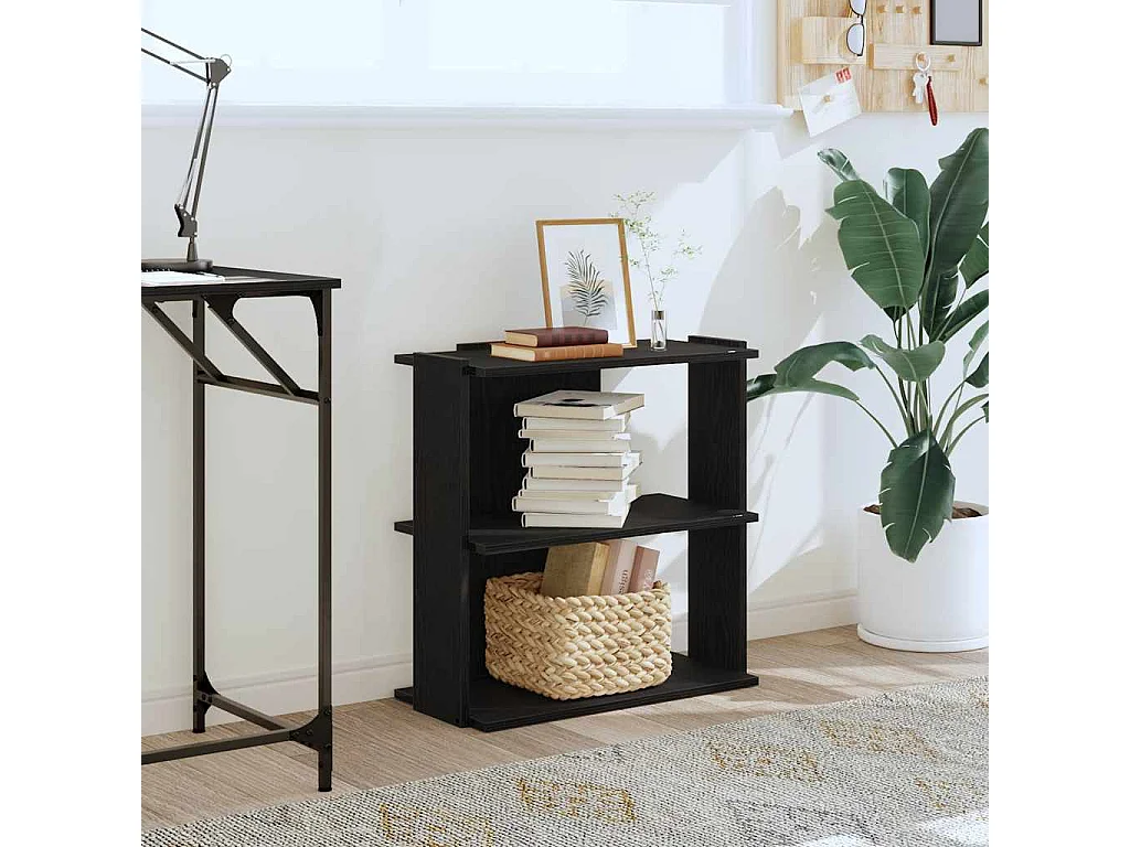 Bibliothèque à 3 niveaux noir 60x30x60 cm bois d'ingénierie
