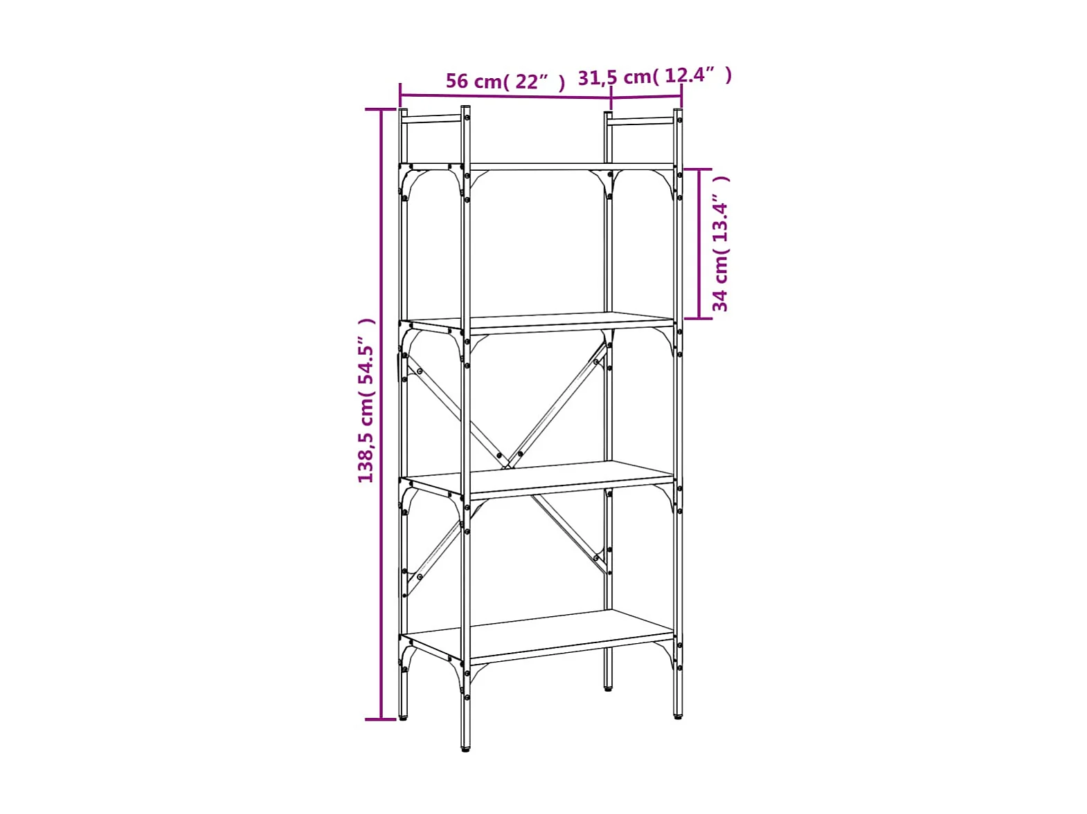 Bibliothèque à 4 niveaux chêne fumé 56x31,5x138,5