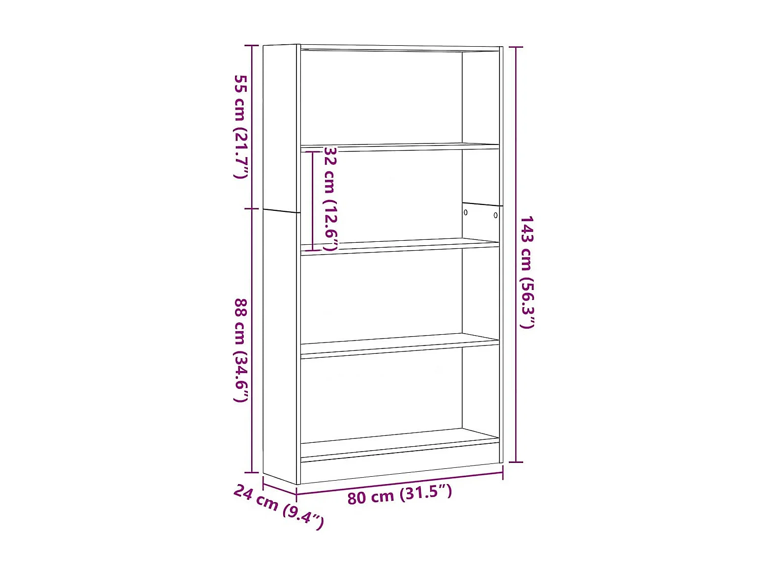 Bibliothèque à 4 niveaux chêne noir 80x24x143 cm