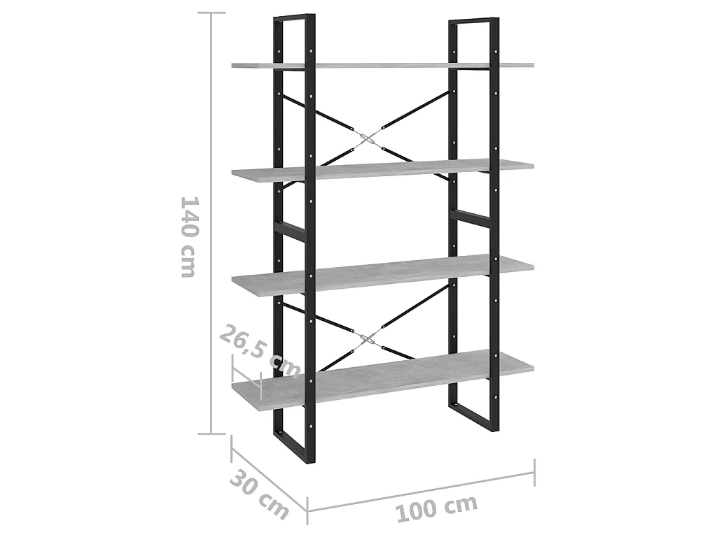 Bibliothèque à 4 niveaux Gris béton 100x30x140
