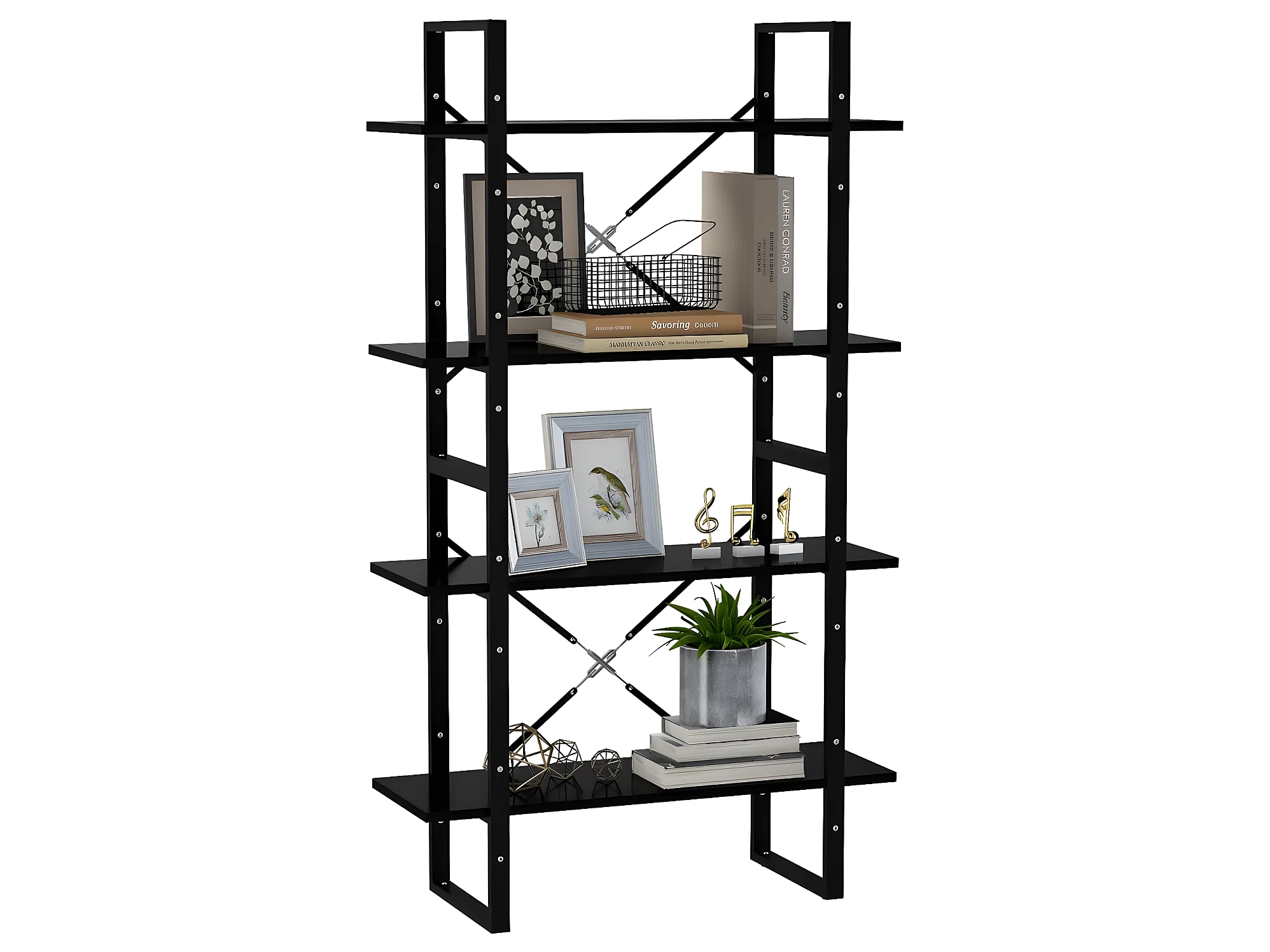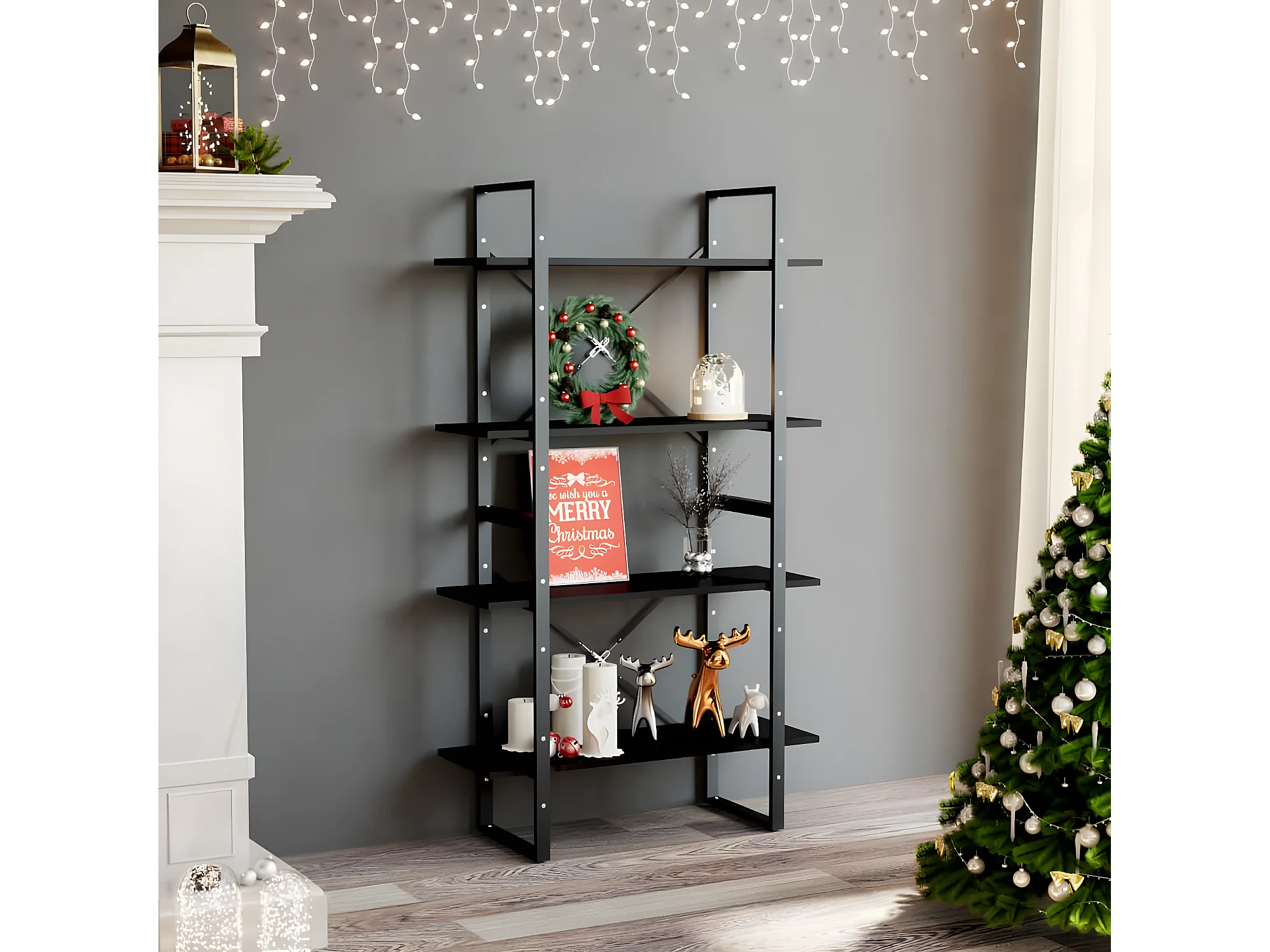 Bibliothèque à 4 niveaux noir 80x30x120 cm bois d'ingénierie