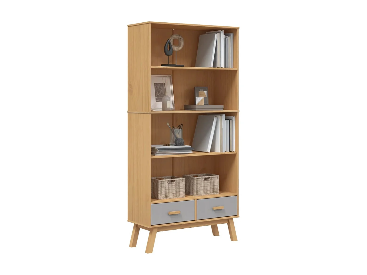 Bibliothèque à 4 niveaux OLDEN gris marron bois de pin massif FR87583