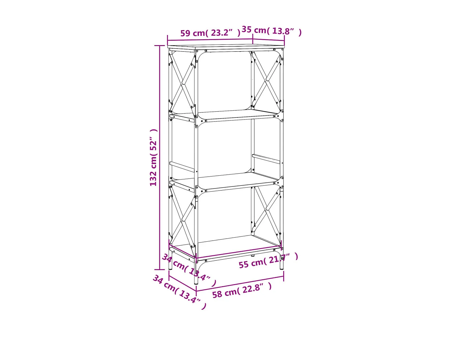 Bibliothèque à 4 niveaux sonoma gris 59x35x132