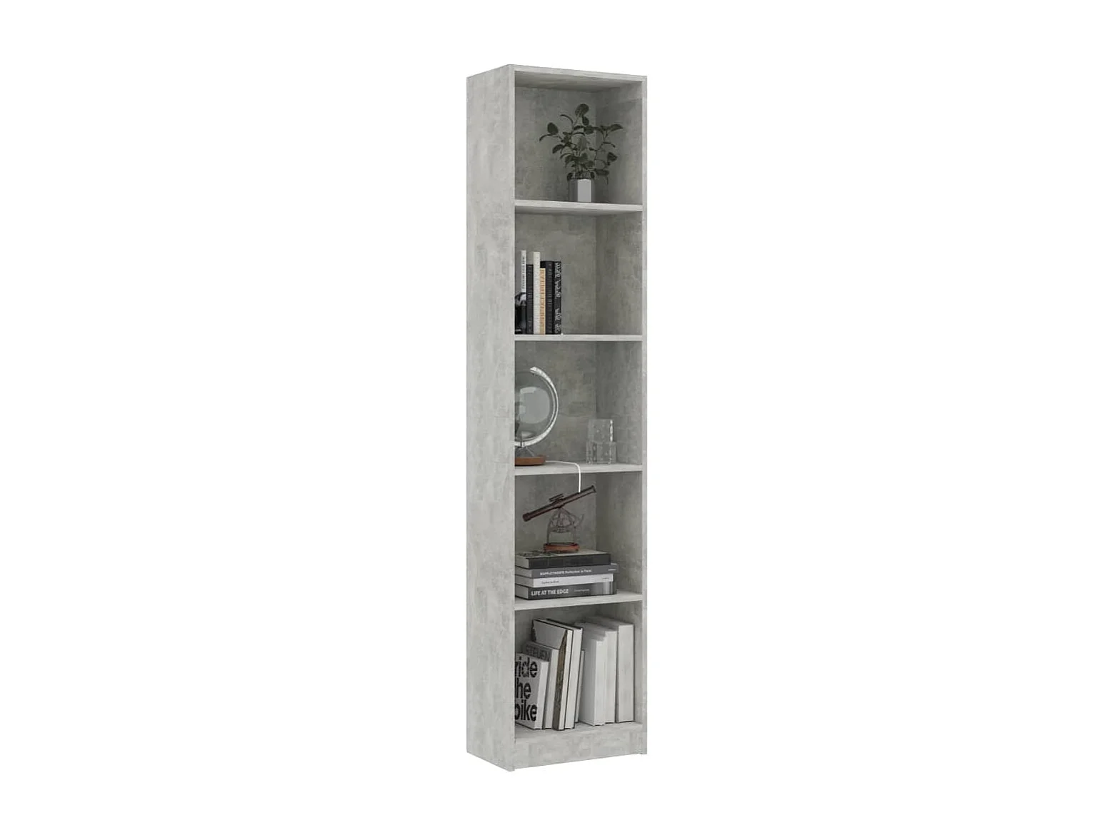 Bibliothèque à 5 niveaux Gris béton 40x24x175cm Bois ingénierie