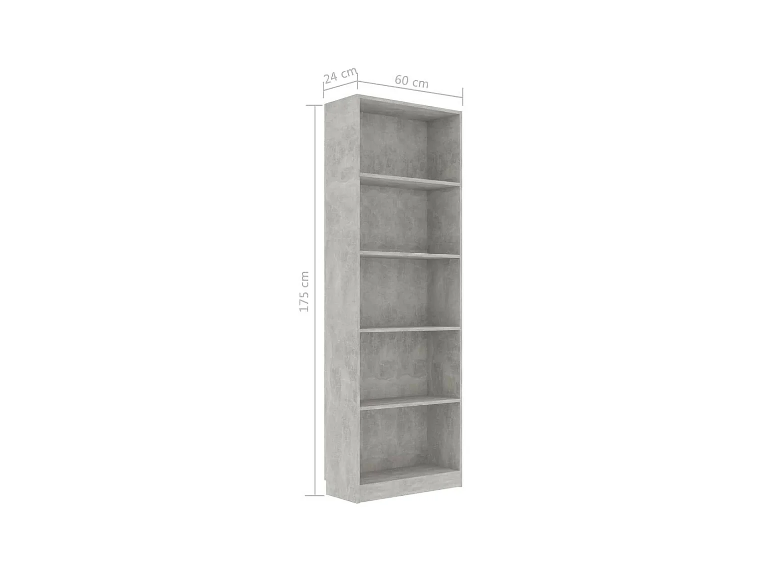 Bibliothèque à 5 niveaux Gris béton 60x24x175