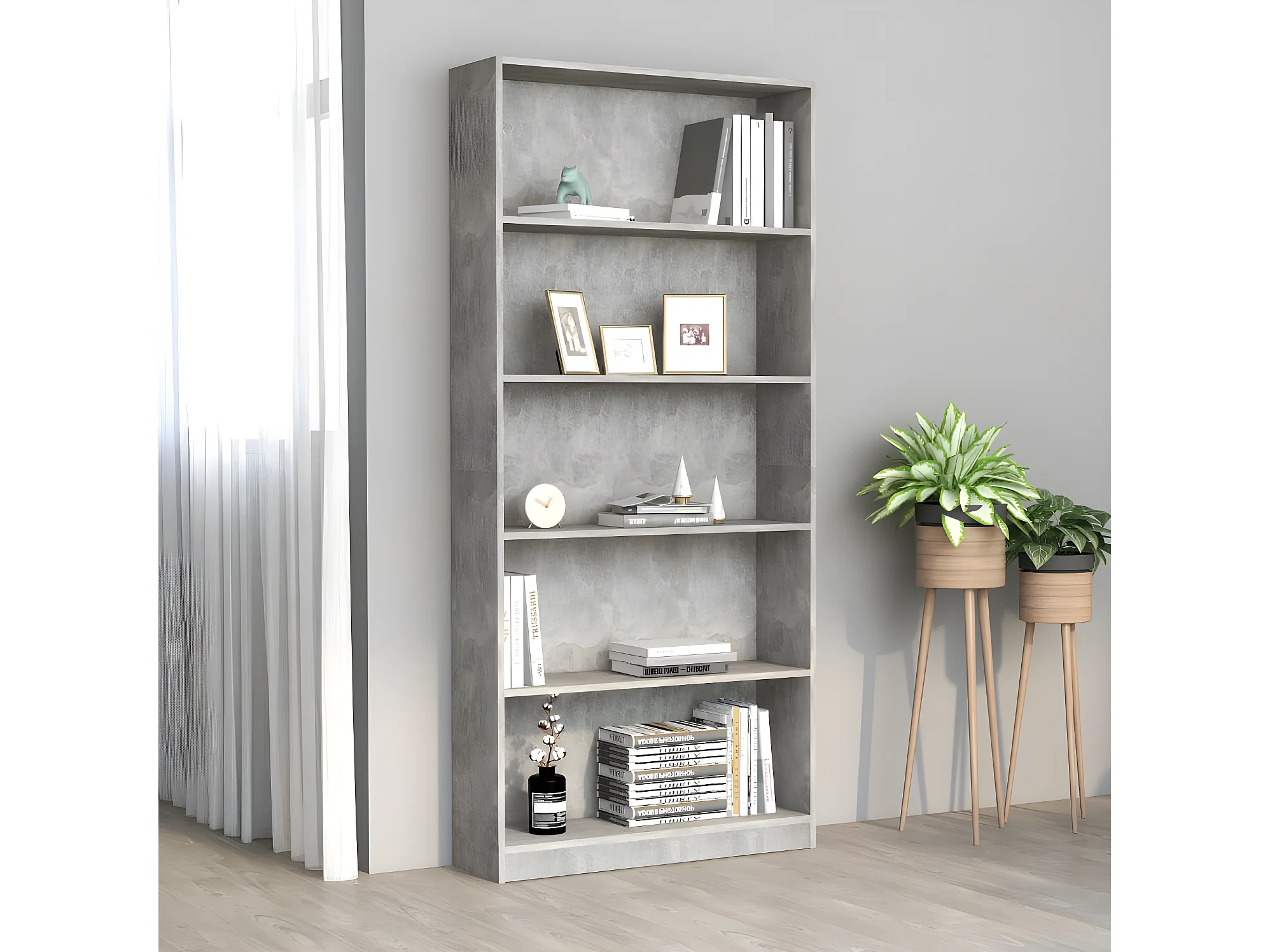 Bibliothèque à 5 niveaux Gris béton 80x24x175