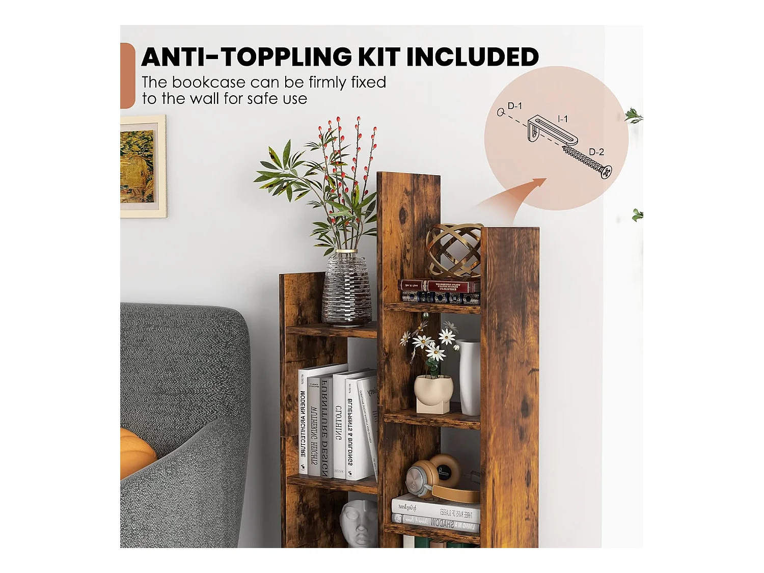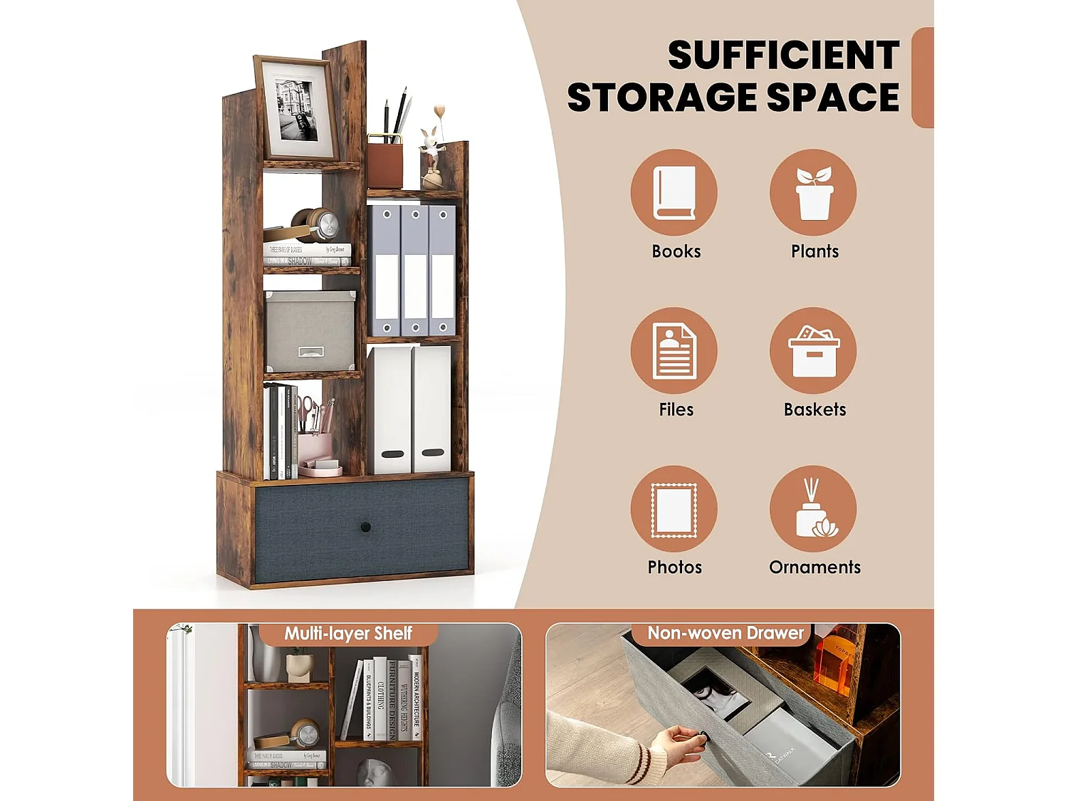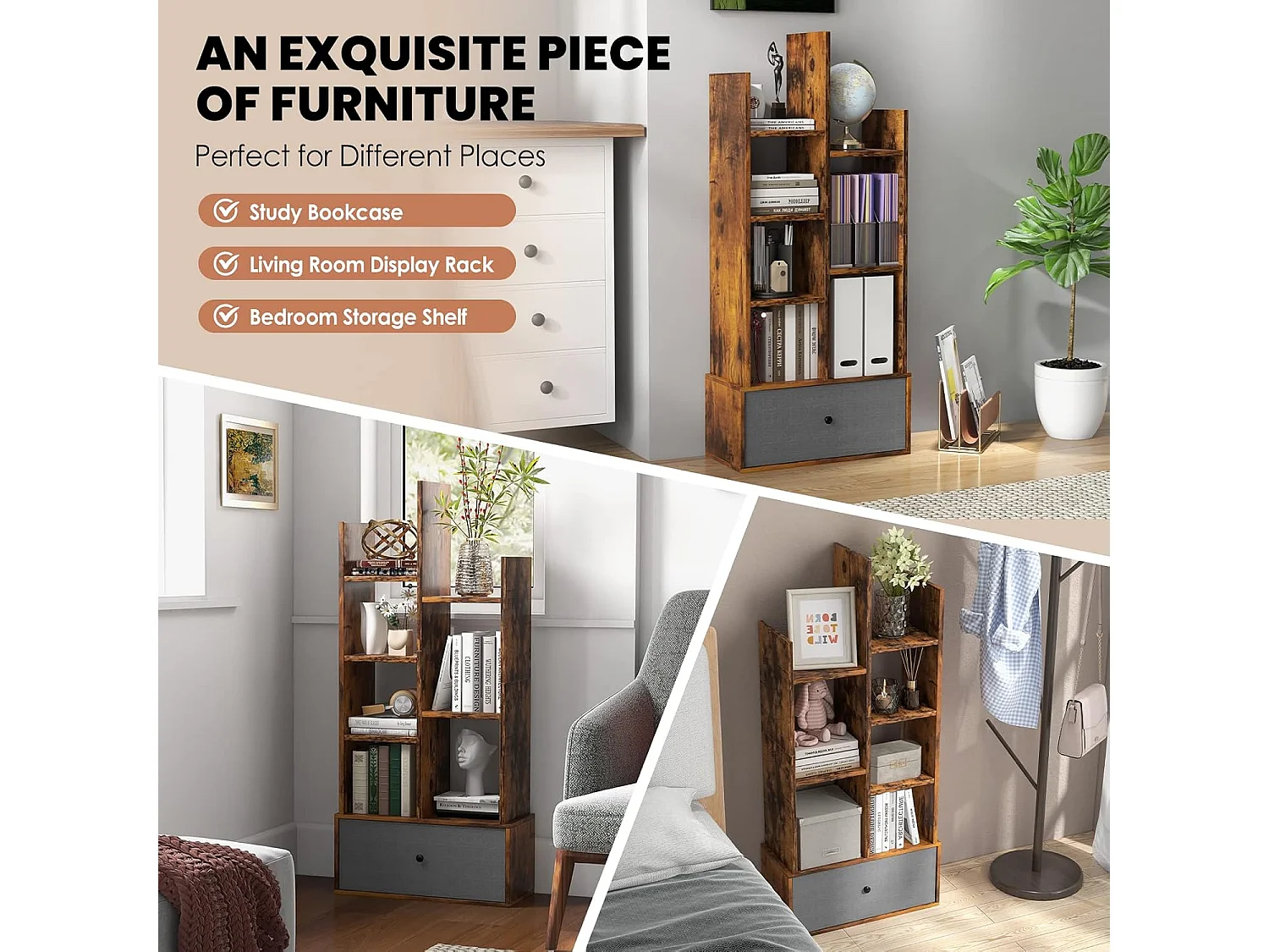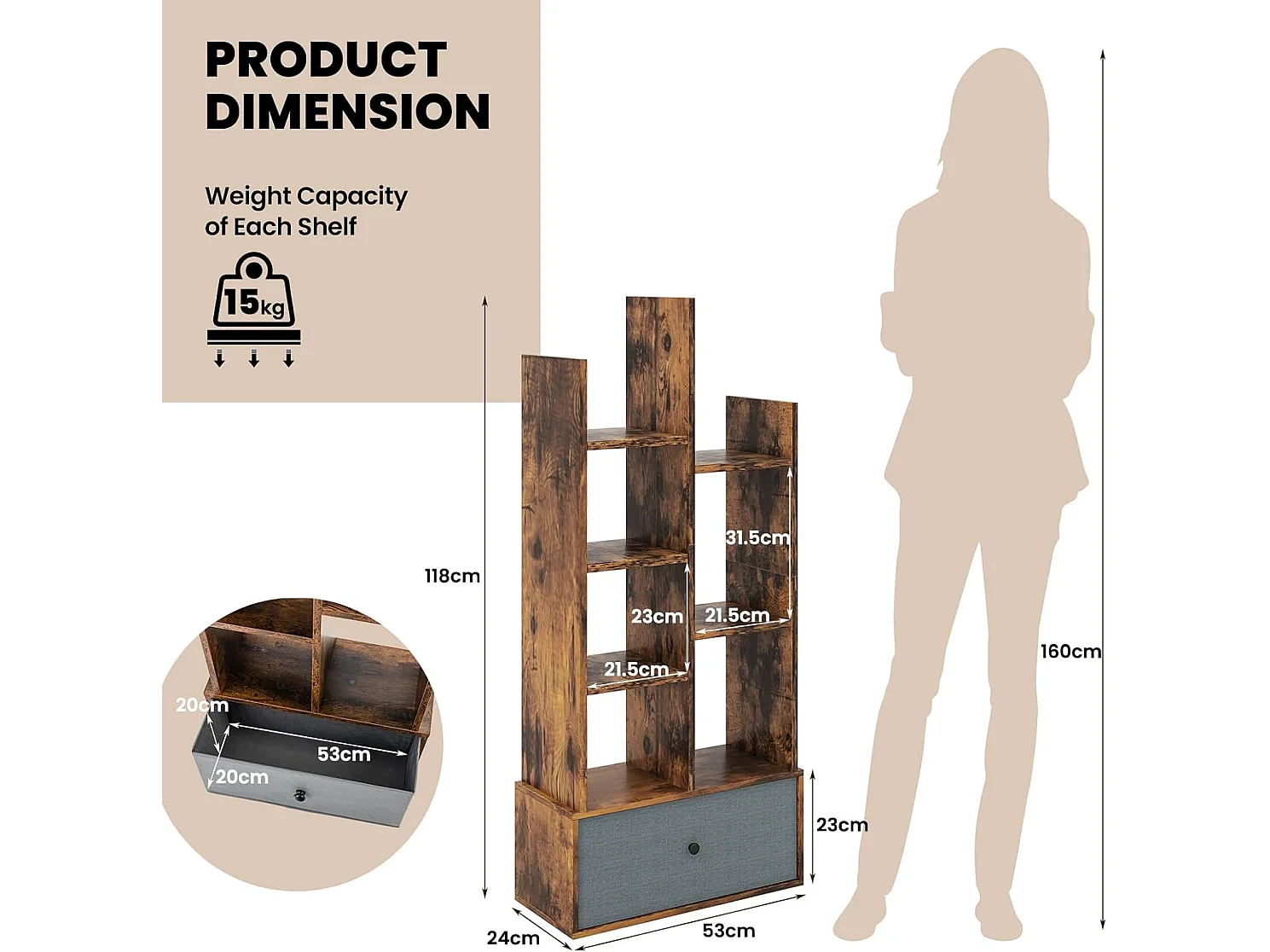 Bibliothèque à 7 niveaux avec tiroir amovible, étagère 7 compartiments,53x24x118cm marron
