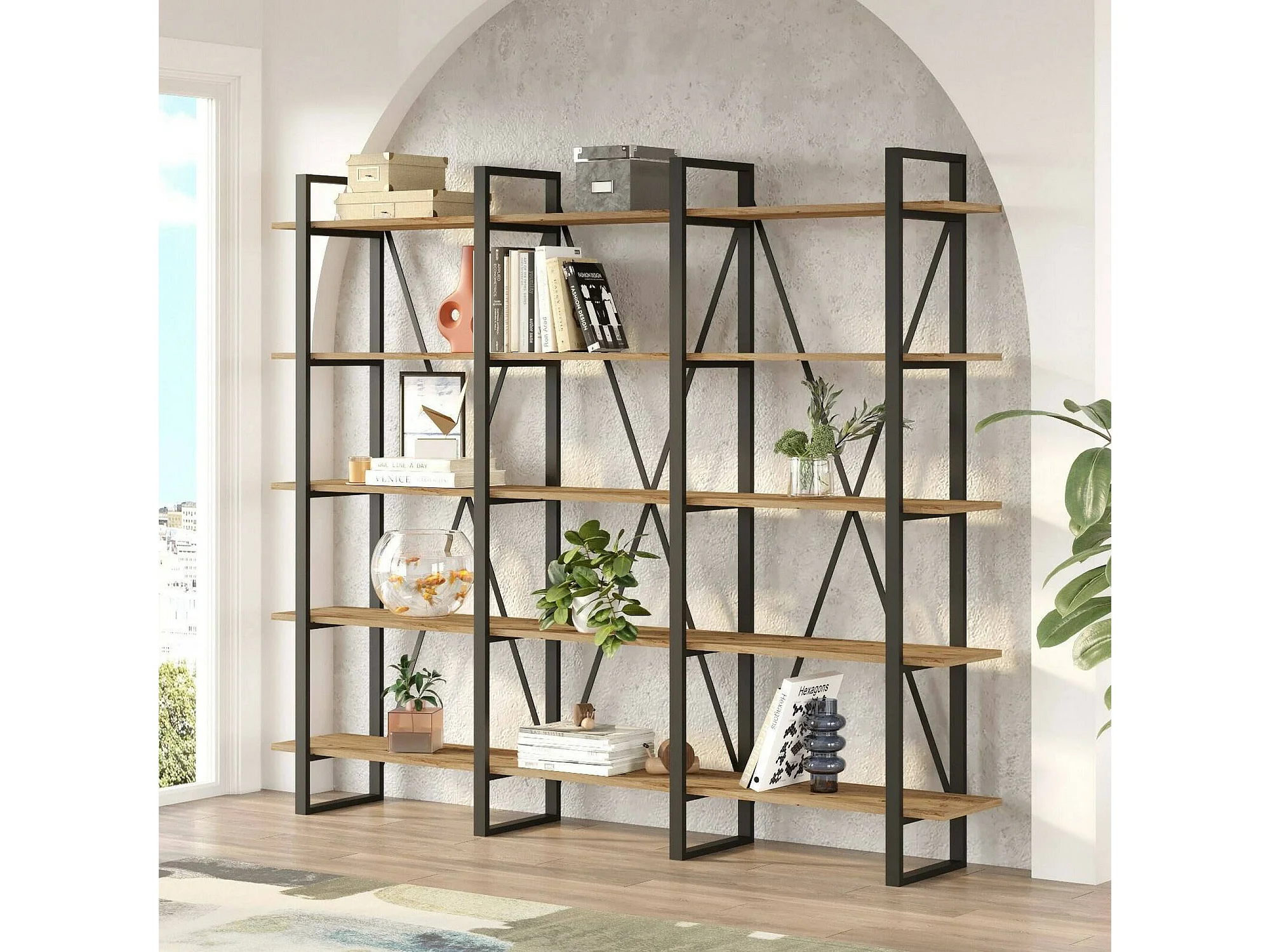Bibliothèque Albayt, Etagère de bureau, Porte-livre mobile, Librairie, 220x34h180 cm, Chêne