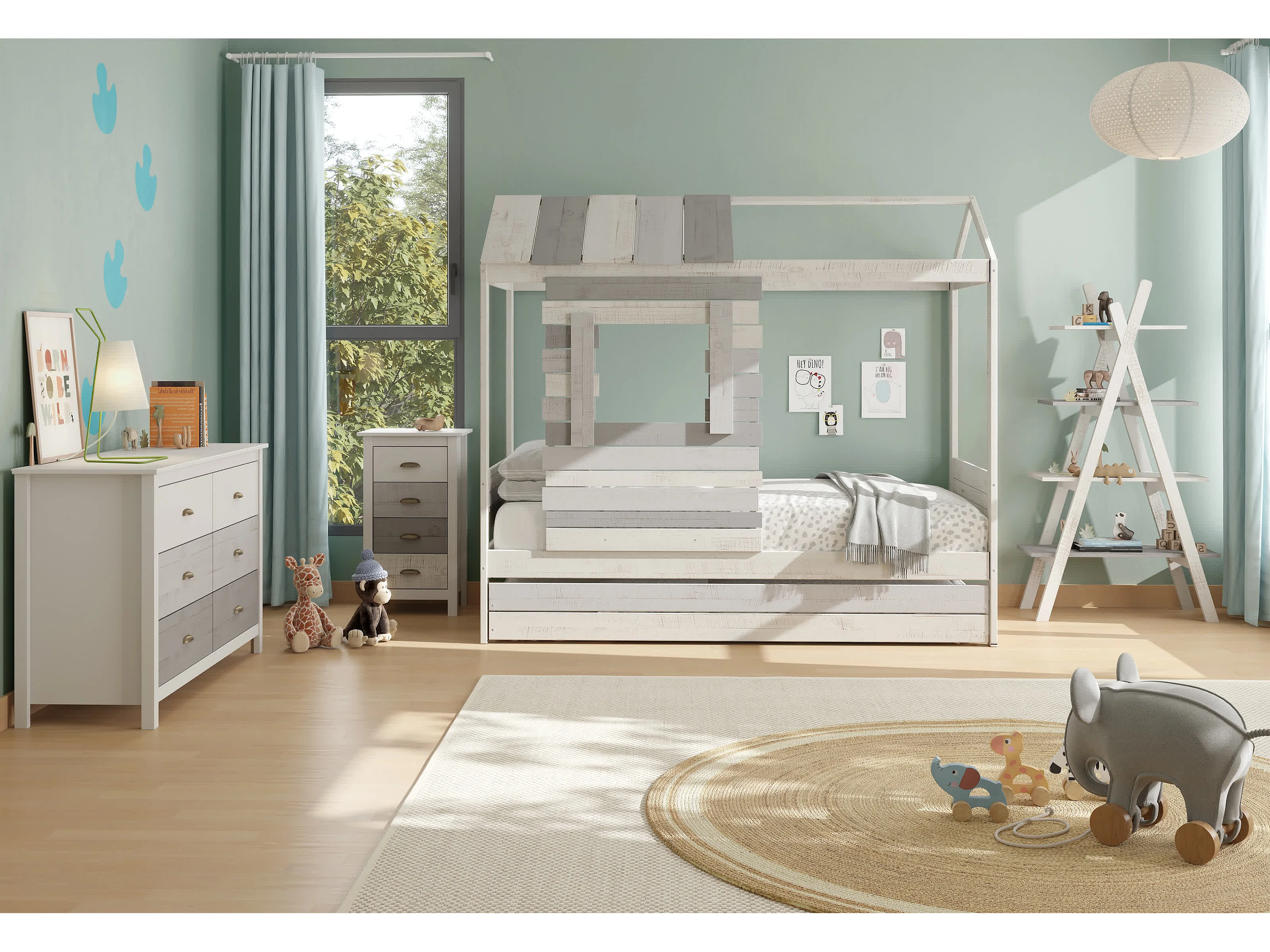 Bibliothèque avec 4 étagères blanc/gris 80x146 cm