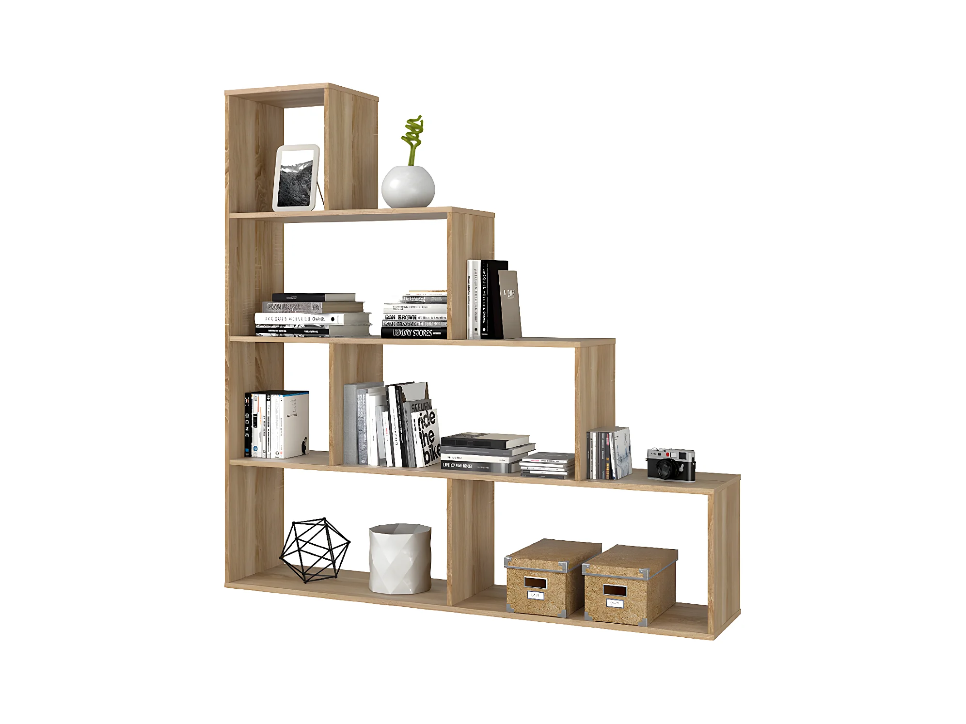 Etagère, bibliothèque avec 15 tablettes coloris chêne cambrian