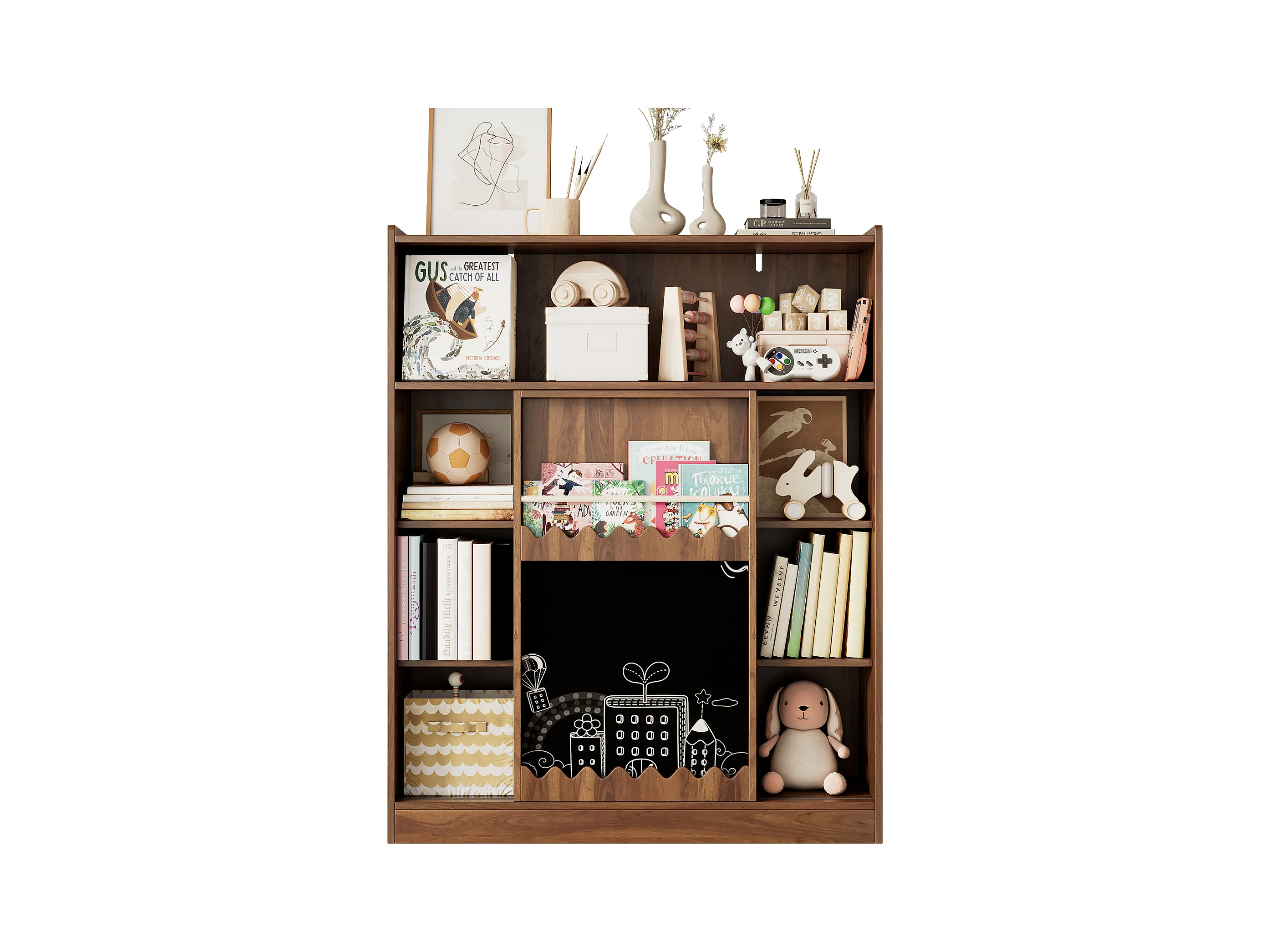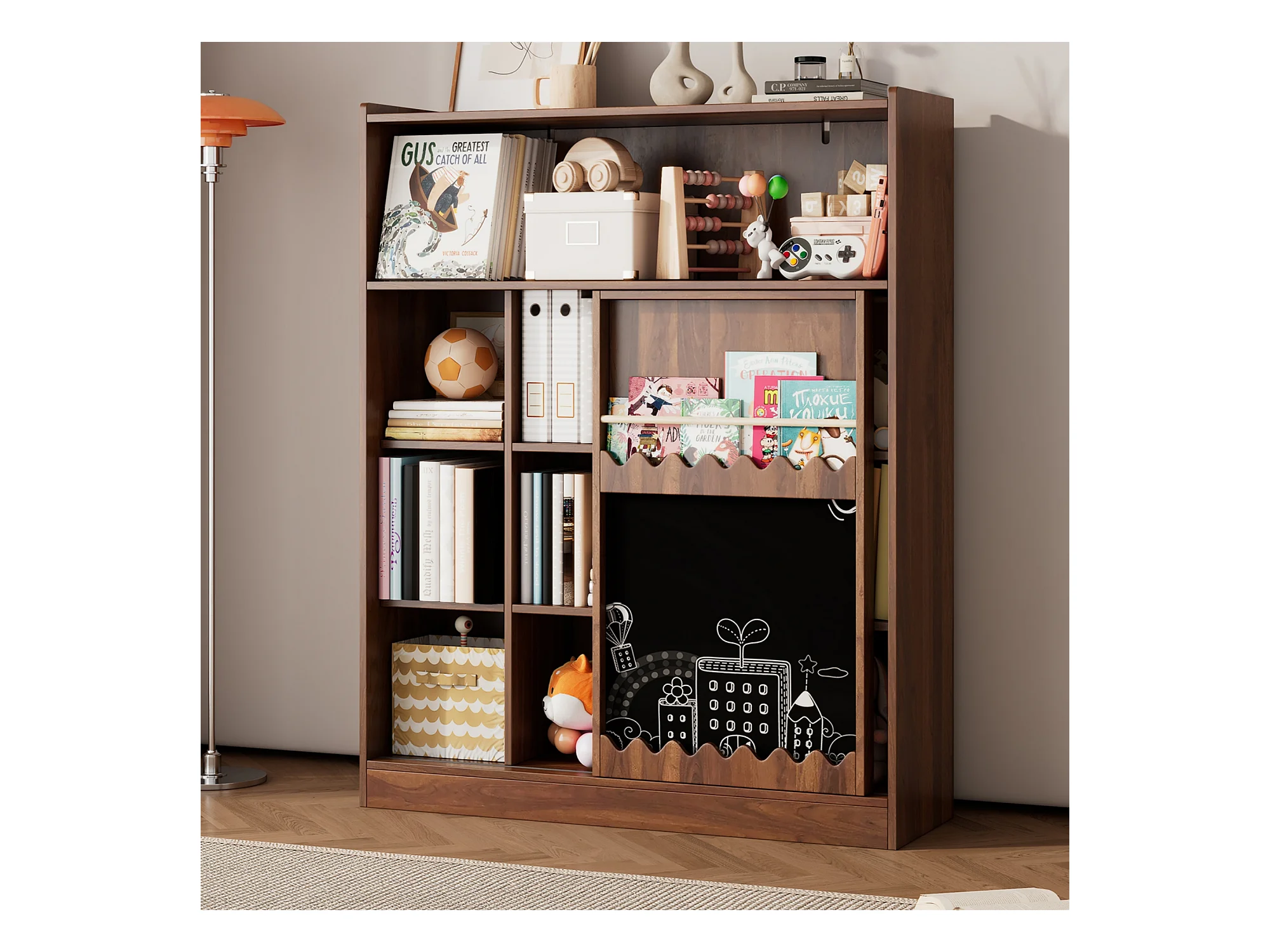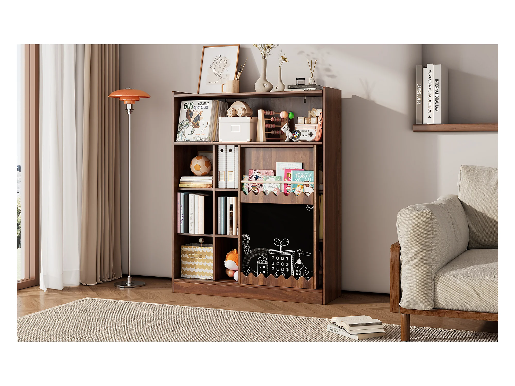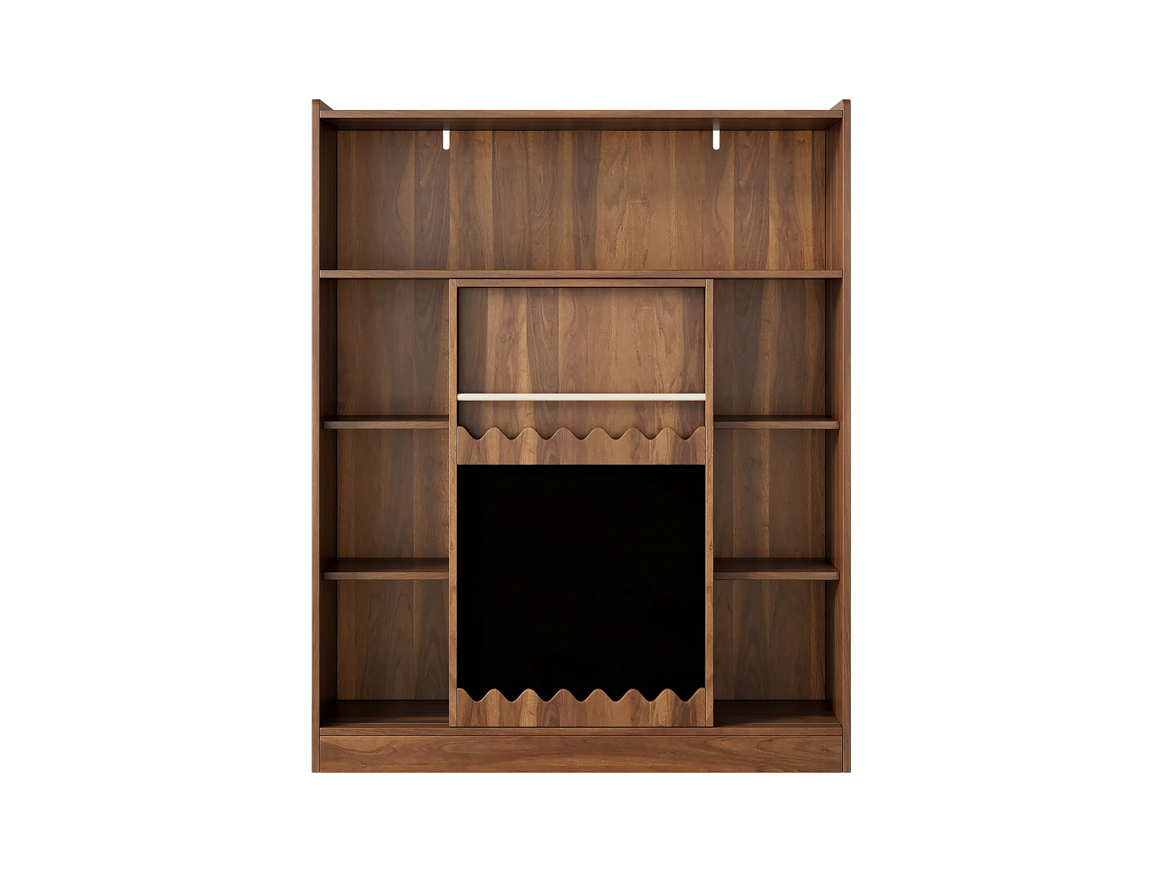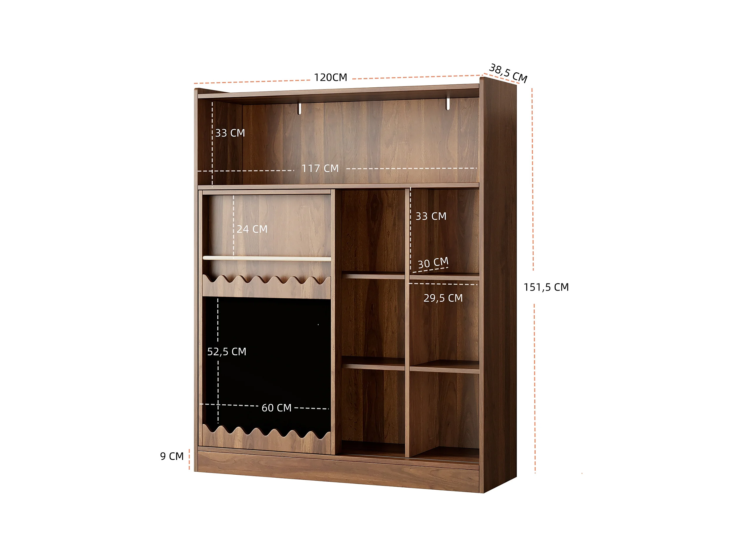 Bibliothèque avec planche à dessin - 120 x 38.5 x 151.5 - avec porte coulissantes - MDF - naturel