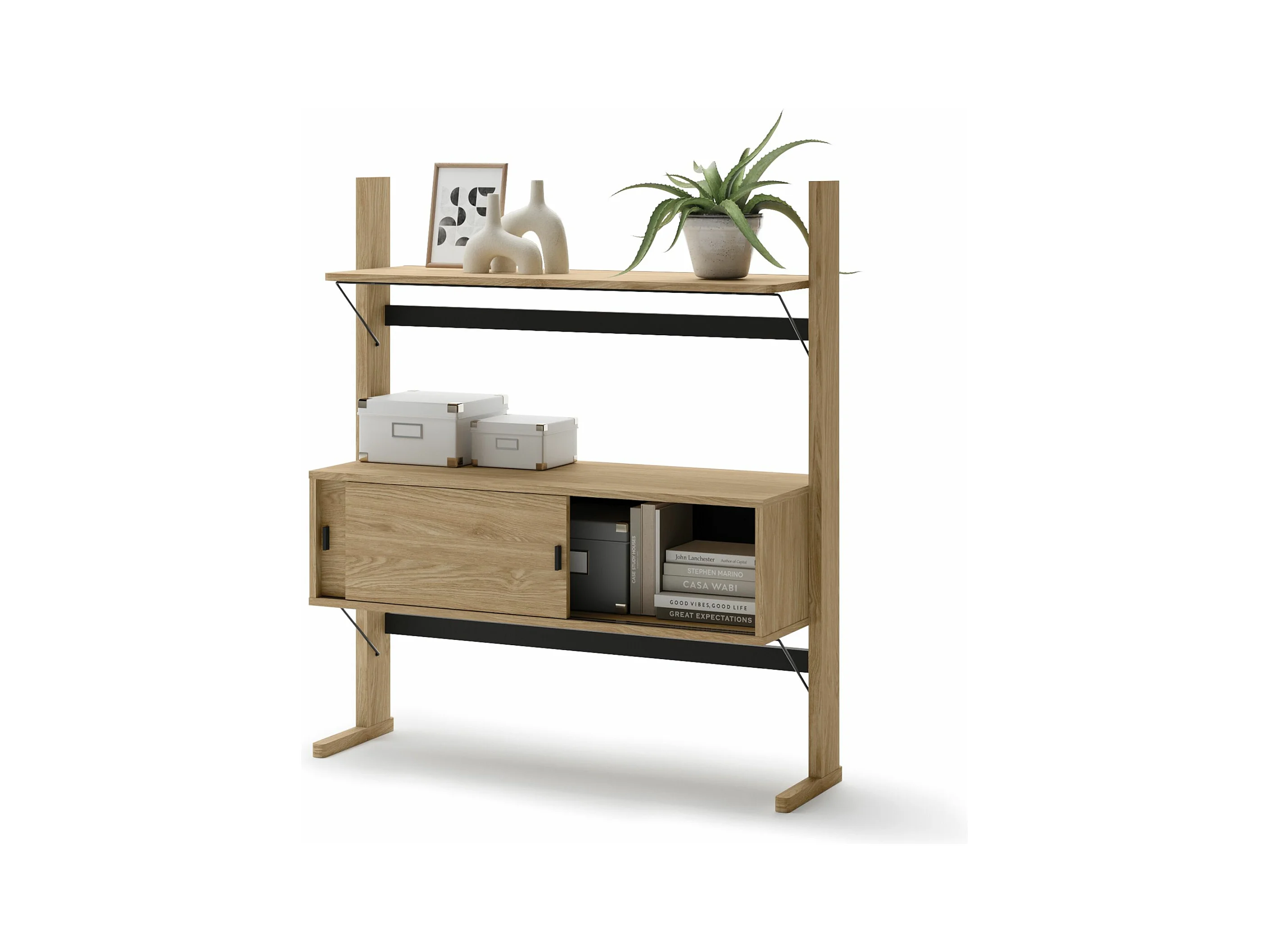 Bibliothèque basse avec rangement - 108 cm - chêne huilé - OLLIE