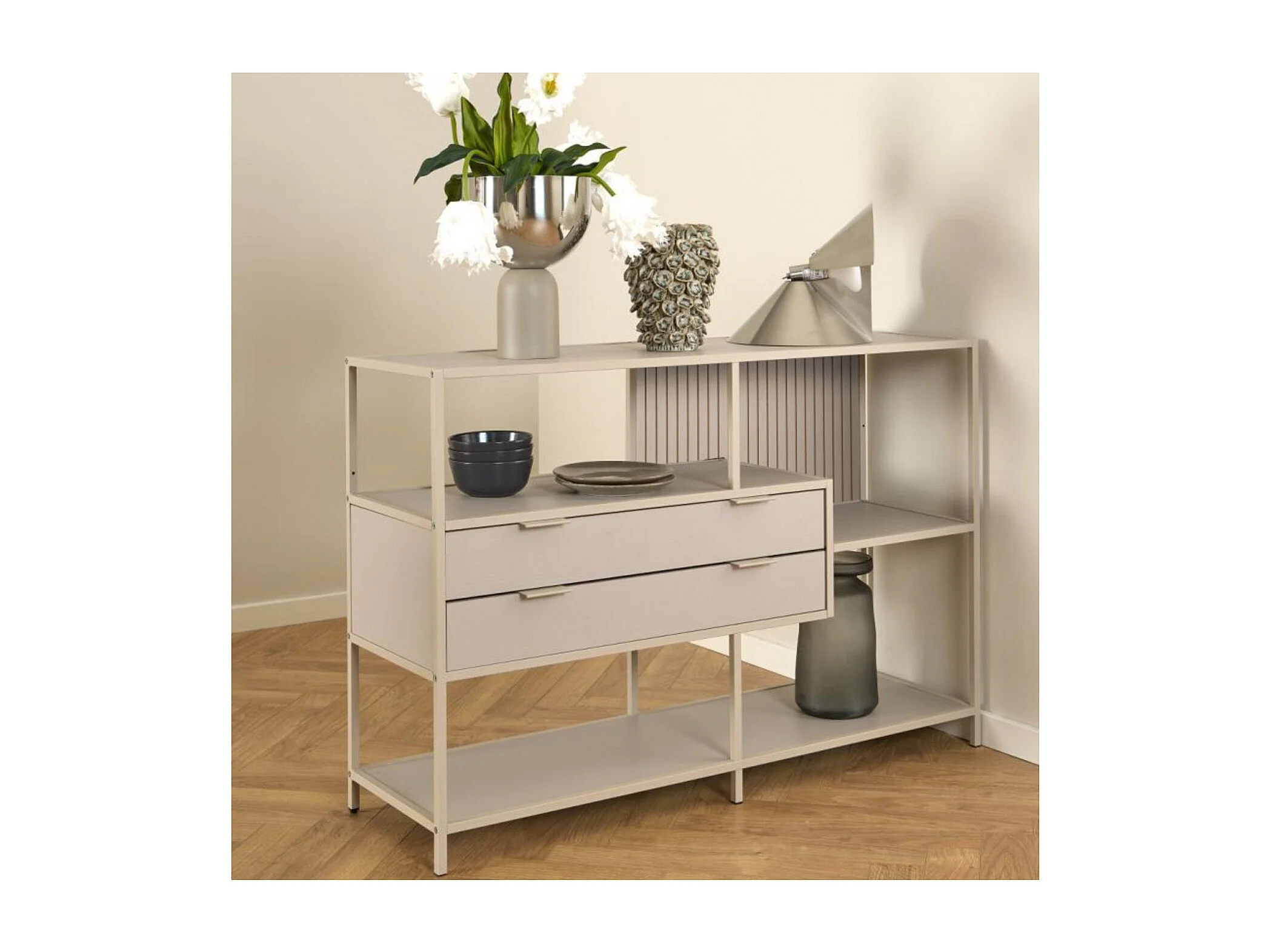 Bibliothèque basse scandinave 2 tiroirs et 3 étagères métal grège - BARRY