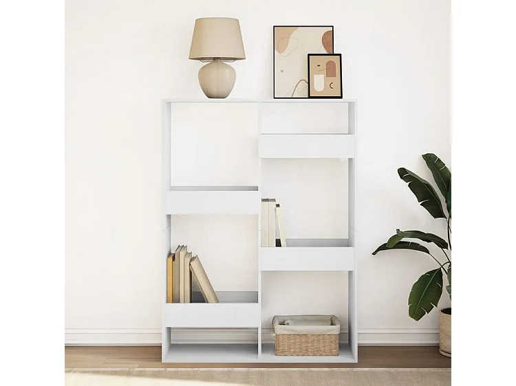 Bibliothèque-Séparateur de pièce Blanc brillant 100x30x135 cm OFR99051 BonneVie Meuble