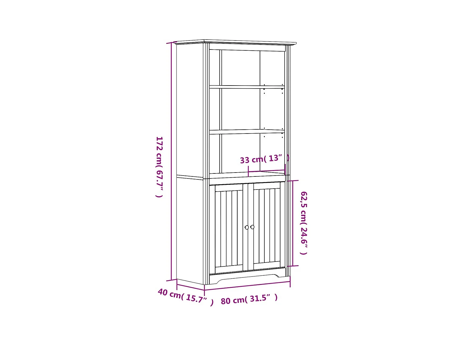 Bibliothèque BODO blanc 80 x 40x172 bois de pin massif