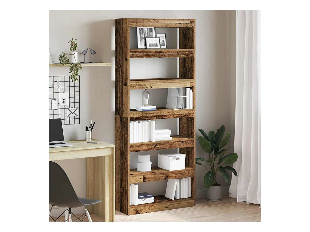 Bibliothèque-Séparateur de pièce Chêne fumé 80x30x198 cm OFR11158 BonneVie Meuble