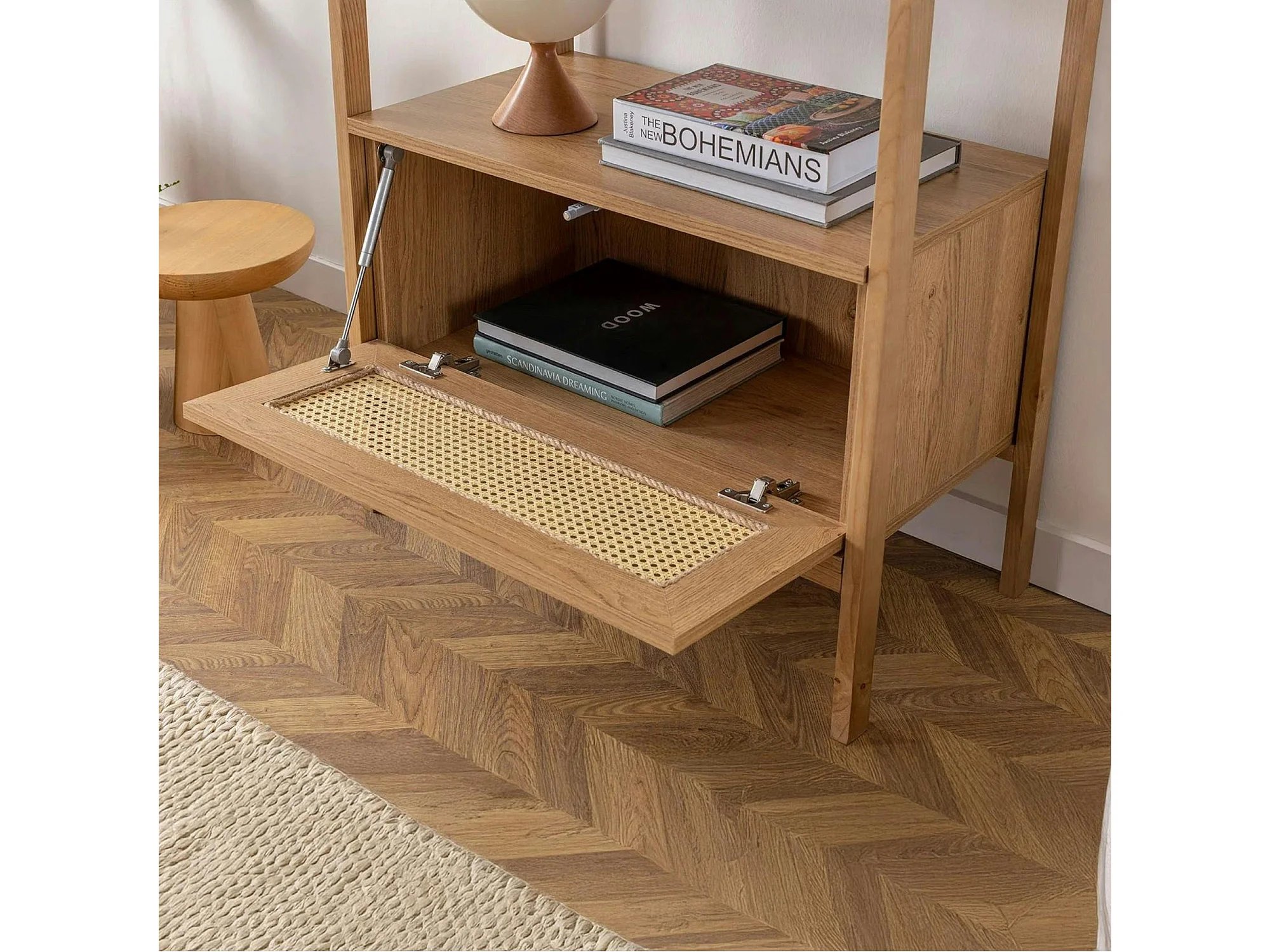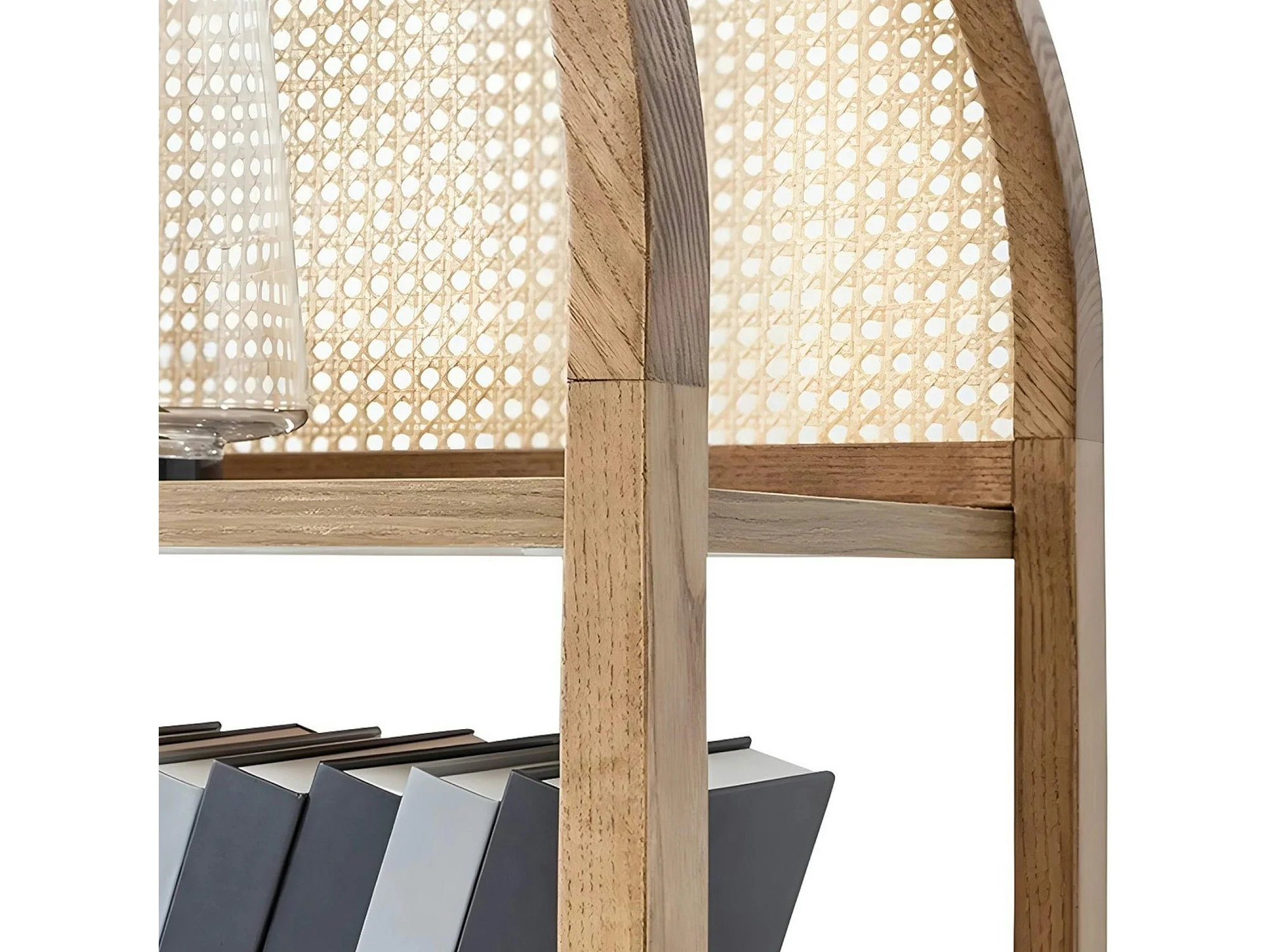 Bibliothèque cannage & effet bois ovale 4 étagères TANDI