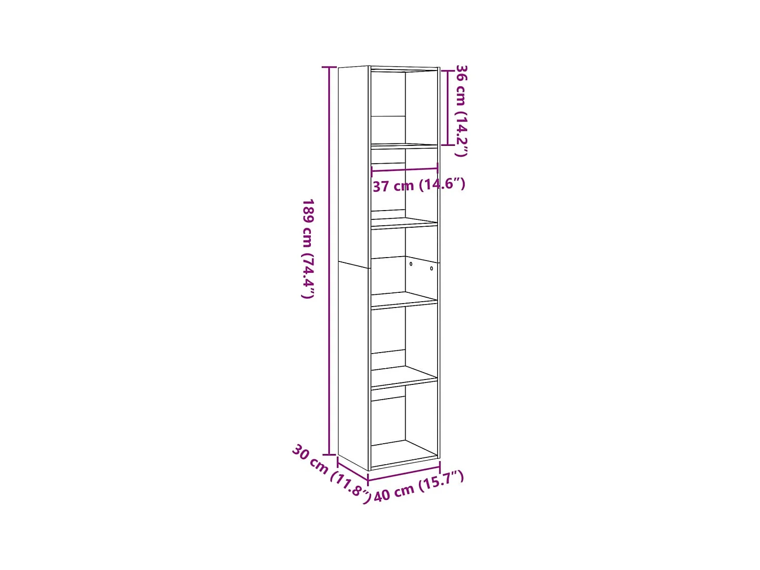 Bibliothèque chêne fumé 40x30x189 cm bois d'ingénierie