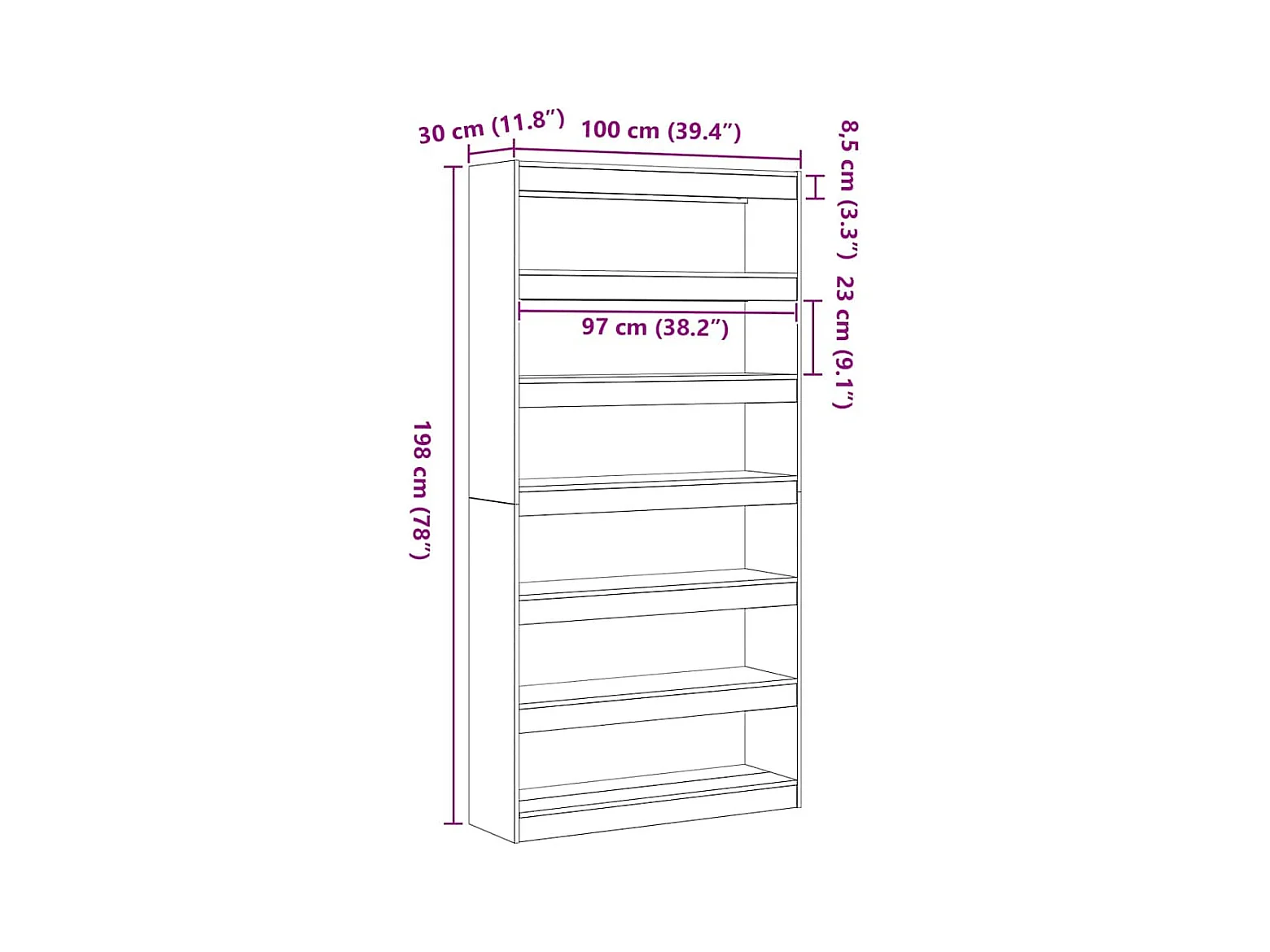 Bibliothèque Chêne artisanal Bois massif 100 x 30 x 198 cm