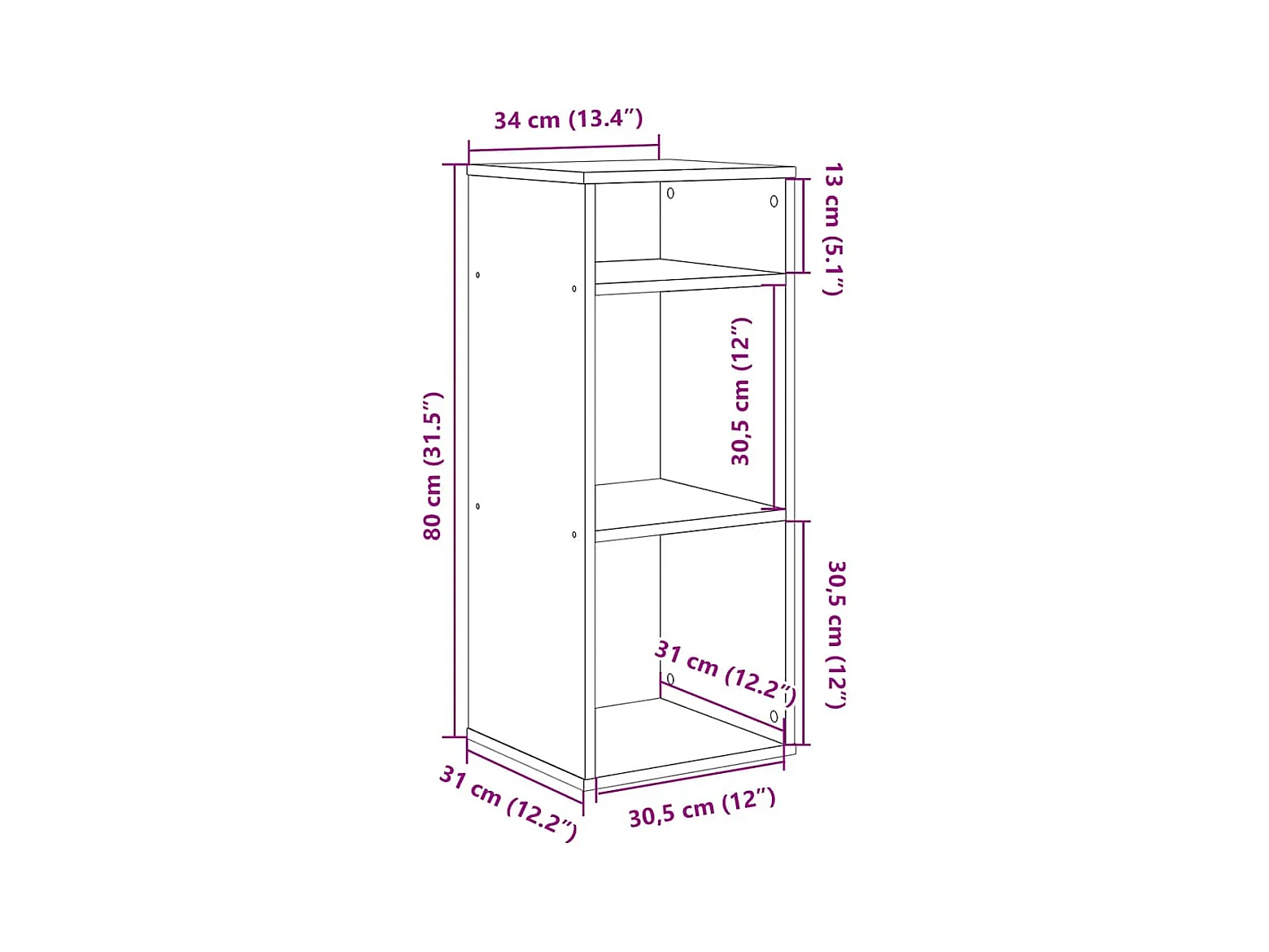 Bibliothèque chêne fumé 34x31x80 cm bois d'ingénierie