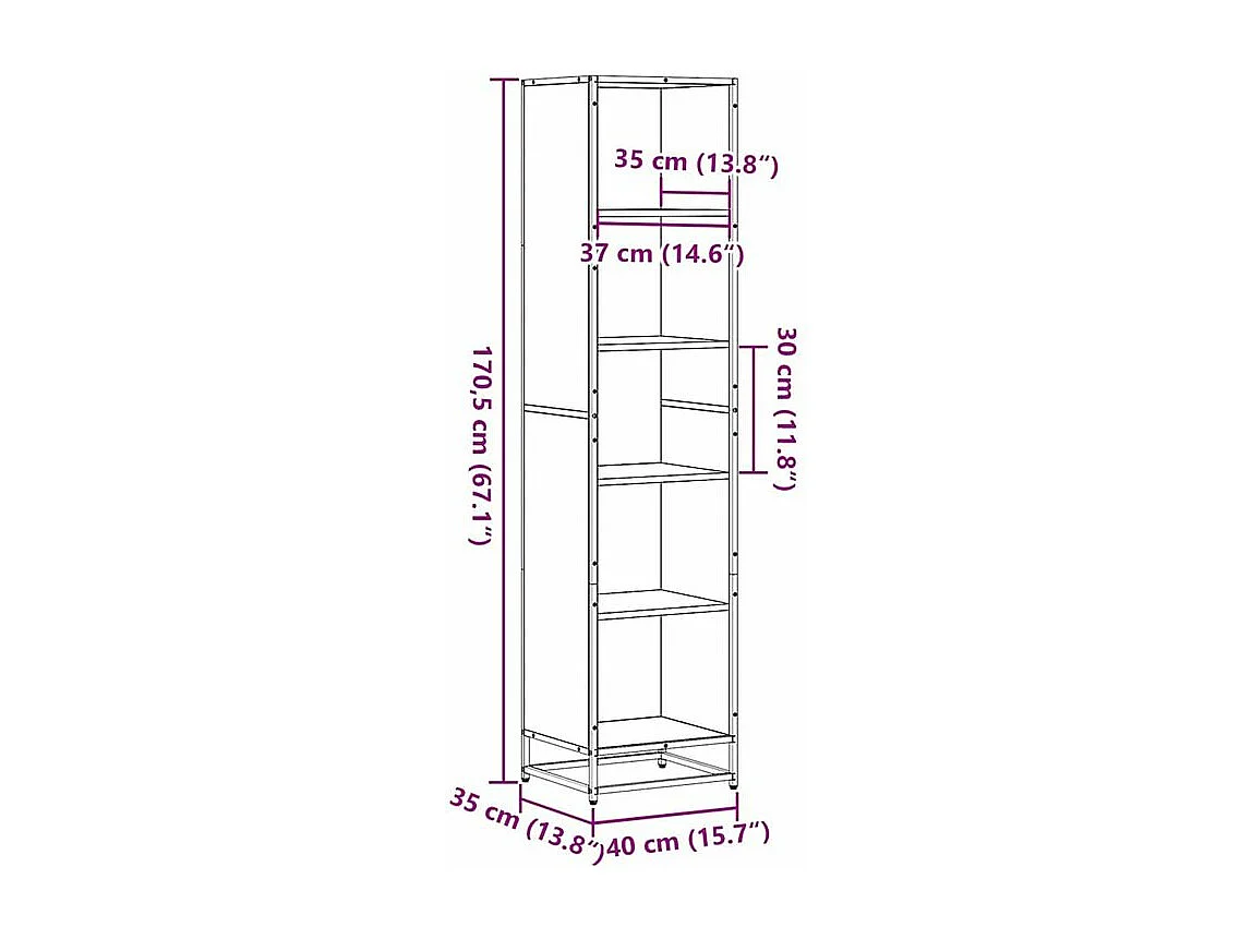 Bibliothèque chêne fumé 40x35x139 bois d'ingénierie
