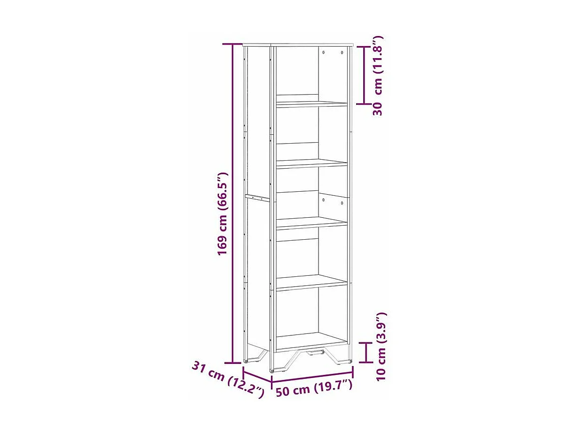 Bibliothèque chêne fumé 50x31x106 bois d'ingénierie