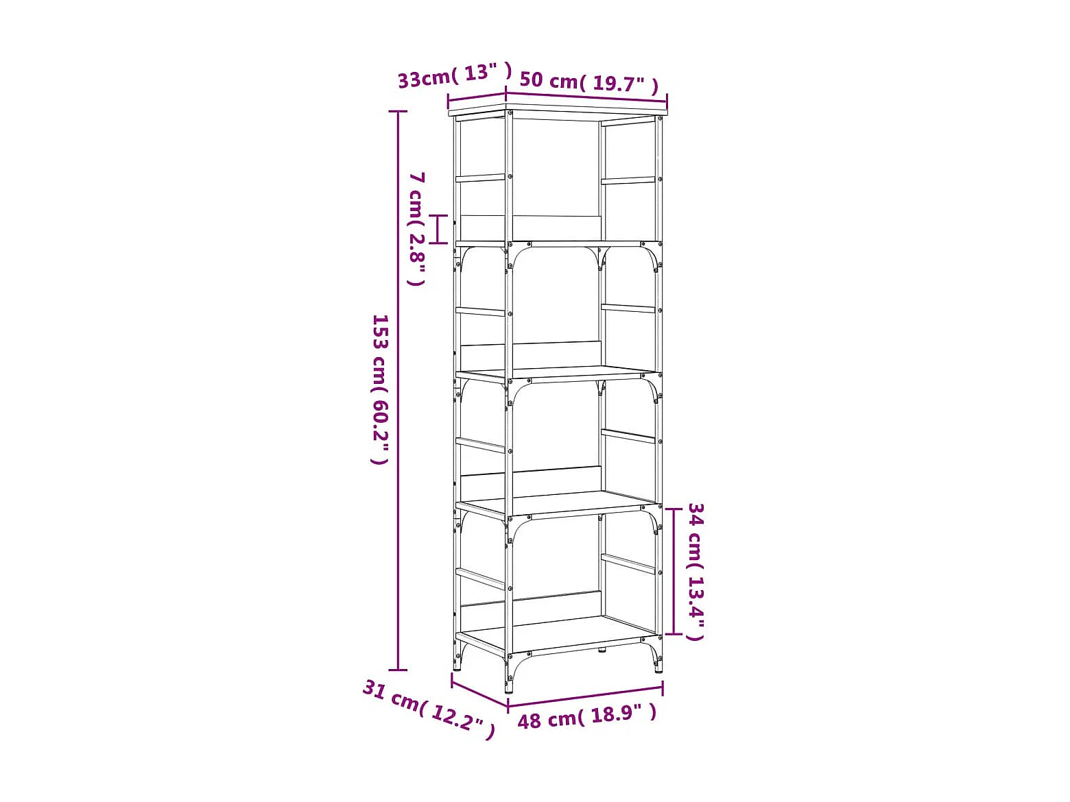 Bibliothèque chêne fumé 50x33x153 bois d'ingénierie