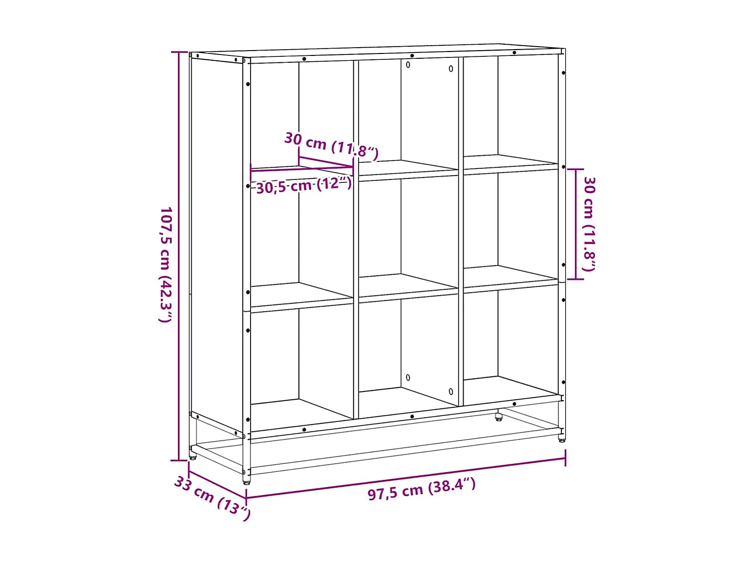 Bibliothèque chêne sonoma 97,5x33x107,5cm bois ingénierie métal